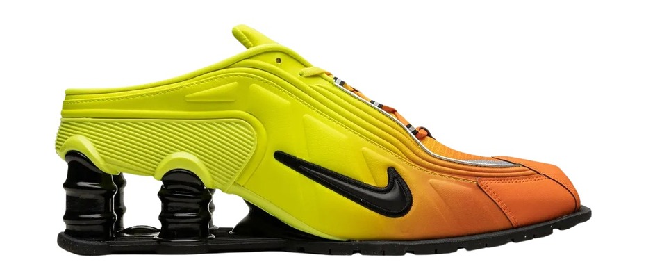 트렌드의 시작점에는 마틴 로즈가 있습니다. 나이키 협업을 위해 현재 한국에 와 있는 그녀는 나이키 샥스 R4의 불씨를 되살렸죠. 2022년 샥스 MR4를 출시했고, 당연히 컬트적 인기를 끌었고요. “운동화에 굽이 있어서 좋아요, 약간 키 높이 효과를 내죠”라고 <보그>의 치오마 나디는 평했어요. “발목에서 끊기지 않으니, 스커트나 원피스 입을 때 다리가 길어 보여요.”