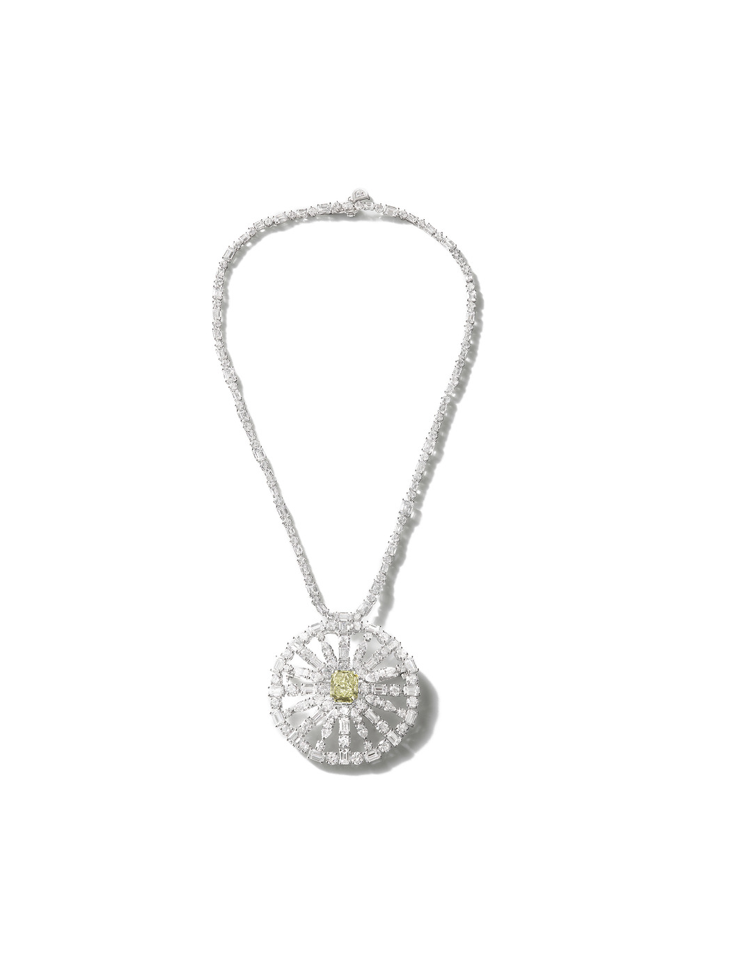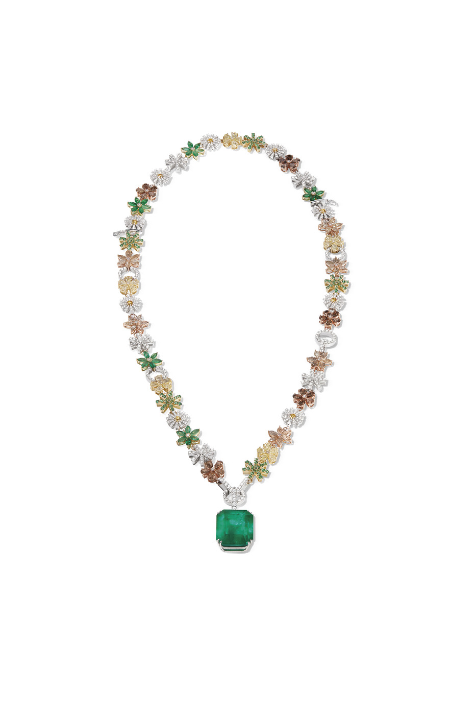 오드 올 이탈리아 컬렉션에는 세 가지 메인 피스가 있다. 가장 먼저 내가 매년 여름 방문하는 사르데냐 해변을 형상화한 ‘마레아 로사(Marea Rosa)’다. 무척 좋아하는 장소여서 즉각적인 영감이 되었다. 두 번째는 그 자체로도 독보적인 31.46캐럿의 콜롬비아산 에메랄드를 사용한 ‘돌체 스틸 노보(Dolce Stil Novo)’. ‘마르게리타’ 컬렉션의 일부 요소와 조화를 이루며 토스카나 언덕을 표현한다. 마지막으로 팬시 옐로 그린 다이아몬드를 세팅한 펜던트가 달린 ‘에이서니타스(Aethernitas)’다. 비교적 클래식한 작품이지만, 중앙에 자리한 스톤이 희귀하고 독창적이기에 유일무이한 피스라고 할 수 있다.