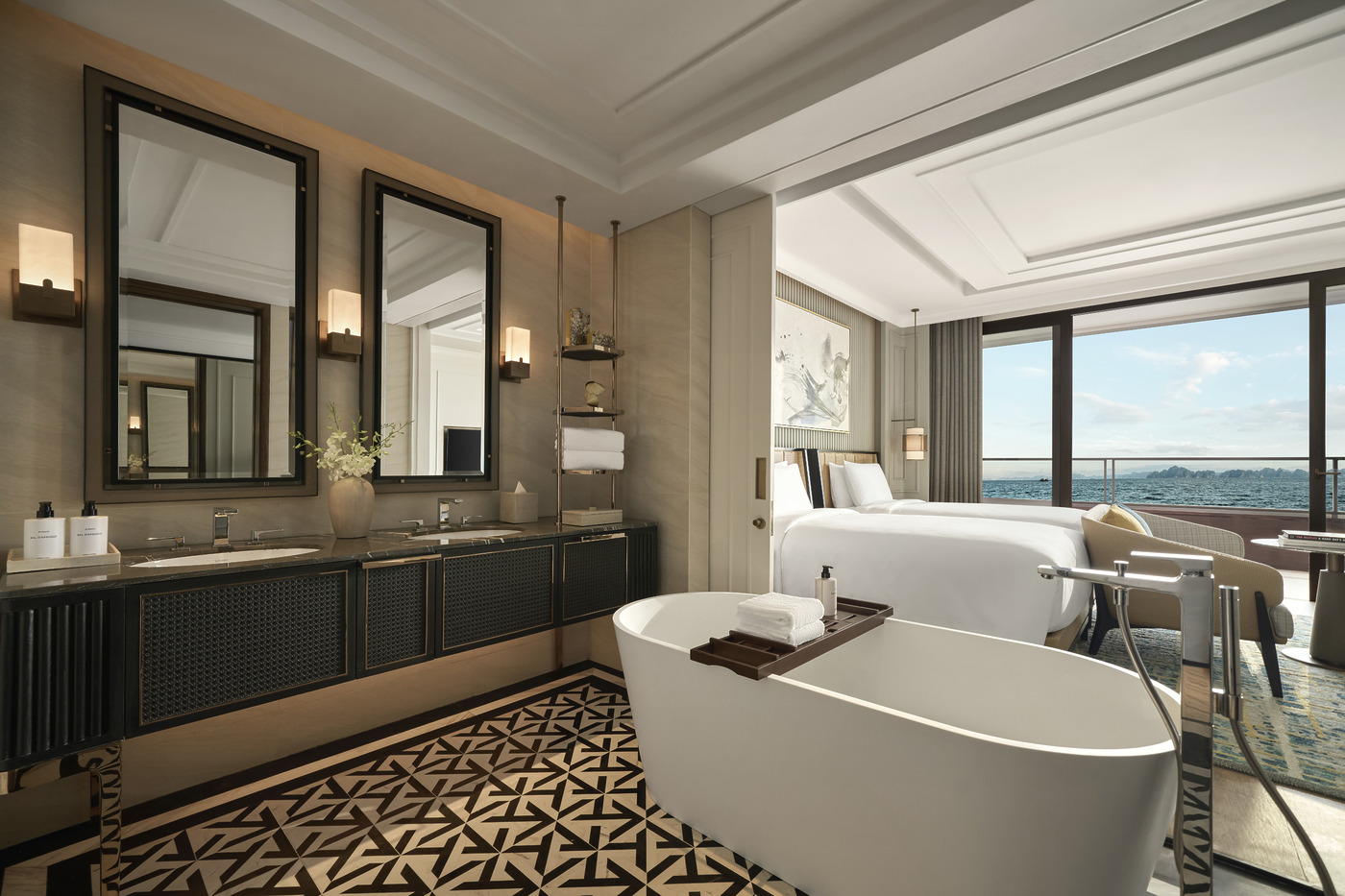 이곳에 머무는 내내 테이블 위에서도 잊을 수 없는 파노라마가 펼쳐졌다. 새콤달콤한 베트남 요리와 세계 여러 나라의 요리를 변화무쌍하게 버무리는 6개 레스토랑과 바에서는 베트남 미식계를 대표하는 수준급 셰프들과 창의적인 게스트 셰프 간의 치열한 협업이 시시때때로 이뤄졌다. 동시대적으로 재해석한 일본의 전통 요리와 사케 라이브러리를 아우르는 10층 루프톱의 로쿠 & 스카이 바, 광둥식 요리를 서브하는 위룽 맨션, 블루크랩과 송아지 고기 등 베트남 식재료로 신선한 풍미를 더한 프렌치 요리를 전개하는 라 바게트(La Baguette) 등 선택지는 풍성하다. 그러나 고민할 것 없이 조식 스폿인 마리나 키친으로 매일같이 향해도 부족한 것은 없었다. 쌀국수 하나만 해도 닭고기, 양지, 블루크랩 등 서너 가지 변주를 만날 수 있었으니까. 하롱베이를 배경으로 애프터눈 티 세트를 휴대폰으로 담는 이들도 곳곳에서 눈에 띄었다.
