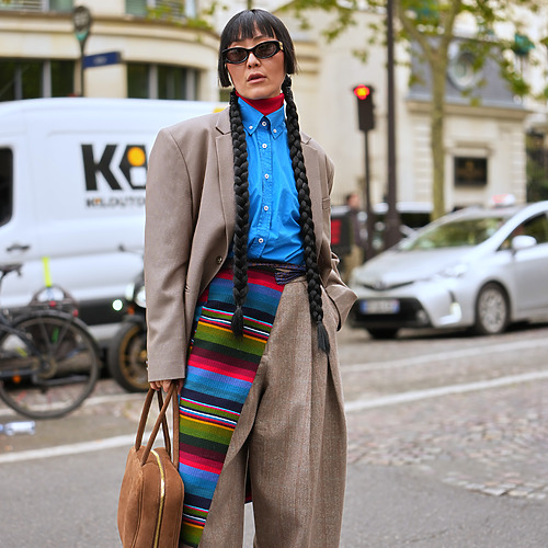레오파드 패턴을 활용할 때는 더 대담합니다. 길쭉한 호피 무늬 코트를 걸치며 패턴을 전면에 내세우죠. 함께 매치한 아이템은 이번에도 ‘기본’ 그 자체였습니다. 청바지나 스웨트 팬츠처럼 캐주얼한 아이템과 조합하니, 어려운 줄로만 알았던 레오파트 패턴이 친숙하게 느껴집니다.
