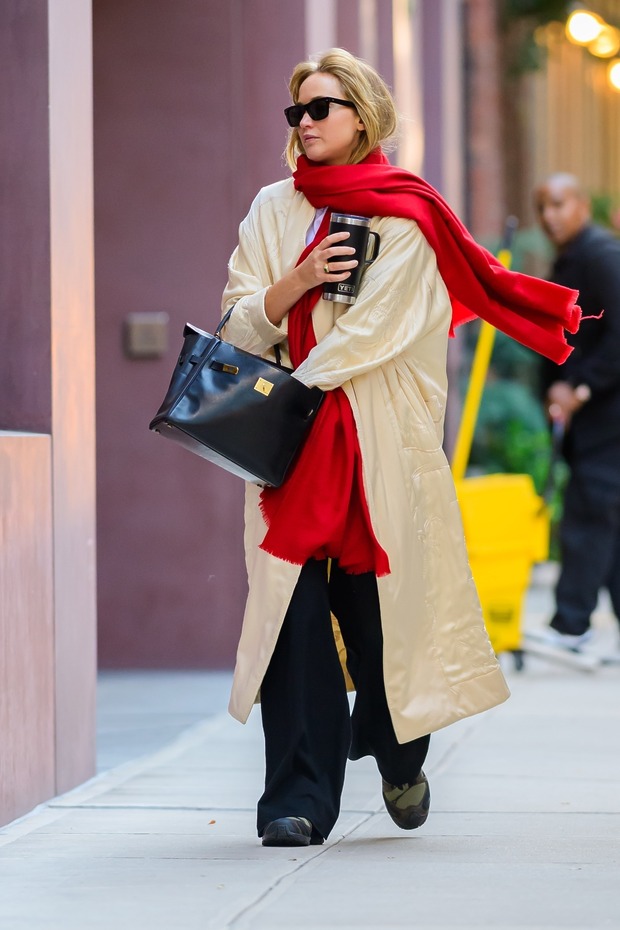 제니퍼 로렌스는 언제나 ‘따라 해보고픈’ 룩을 선보이는 셀럽입니다. 포인트를 적재적소에 활용하는 현실적이지만 절대 지루하지 않은 스타일링이 그녀만의 특기죠. 그런 제니퍼 로렌스가 가을에 빨간색과 호피 무늬를 꺼내 드는 건 어찌 보면 당연합니다. 칙칙한 컬러에 손이 가는 계절이니 강렬한 컬러와 패턴만큼 쉽고 효율적으로 멋을 낼 수 있는 ‘치트 키’도 드무니까요.