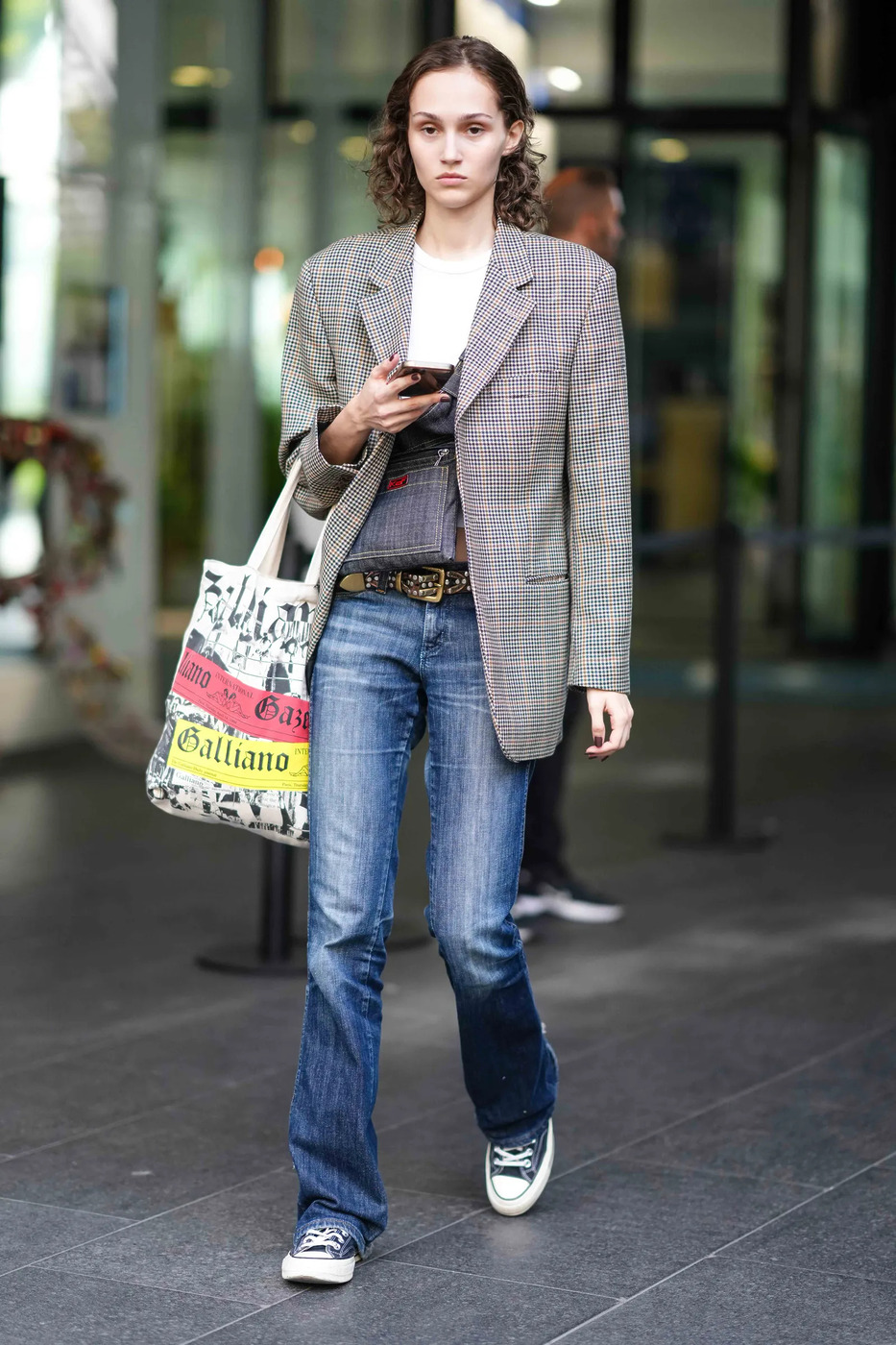 지금의 패션 피플은 컨버스를 어떻게 신고 있는지 살펴볼까요? 컨버스와 데님의 조합은 예나 지금이나 옳습니다. 꼭 명심해야 할 점은, 통 넓은 데님을 피해야 한다는 사실입니다. 컨버스가 기본적으로 얇고 길쭉한 모습인 만큼, 스트레이트 핏 혹은 플레어 핏 데님을 매치하는 것이 가장 효율적이죠. 여기에 예스러운 체크 패턴 블레이저까지 활용하니, 즉시 레트로 분위기의 룩이 완성됐습니다.