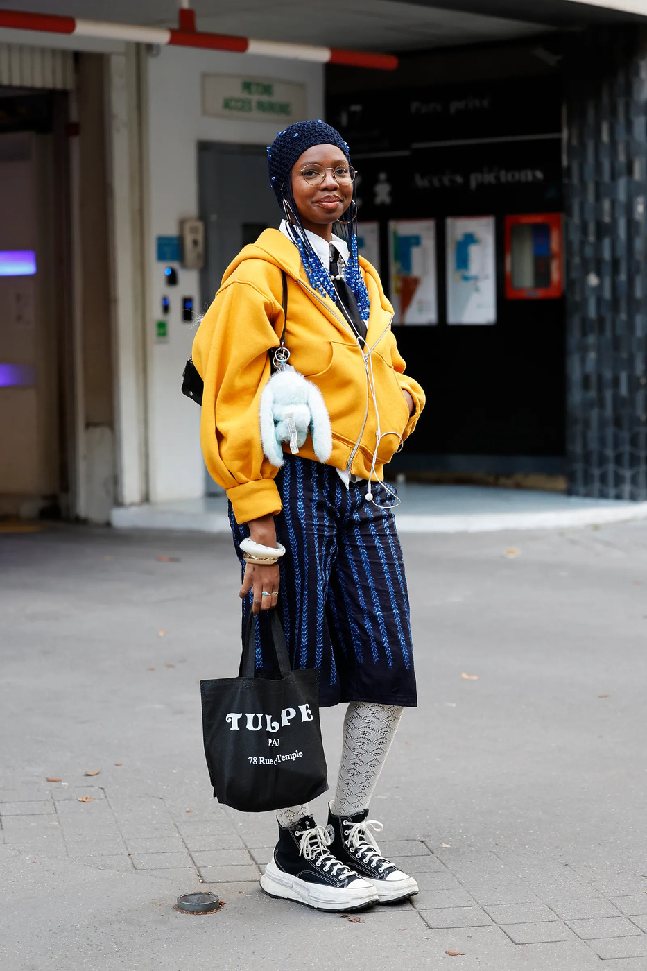 ‘2025년의 패션’을 논하는데 레이어드 스타일링이 빠질 수는 없겠죠. 컨버스의 범용성은 서로 어울리지 않을 법한 아이템들을 조합할 때도 빛을 발합니다. 코펜하겐 패션 위크 중 포착된 한 게스트는 깃털 장식 숄더백, 가죽 소재 트렌치 코트, 화려한 프린트를 새긴 셔츠, 데님 스커트 그리고 레이스 스커트 차림에 활용했습니다. ‘가장 기본적인 형태의 신발’, 컨버스가 아니었다면 이 모든 아이템이 조화를 이룰 수 있었을까요?