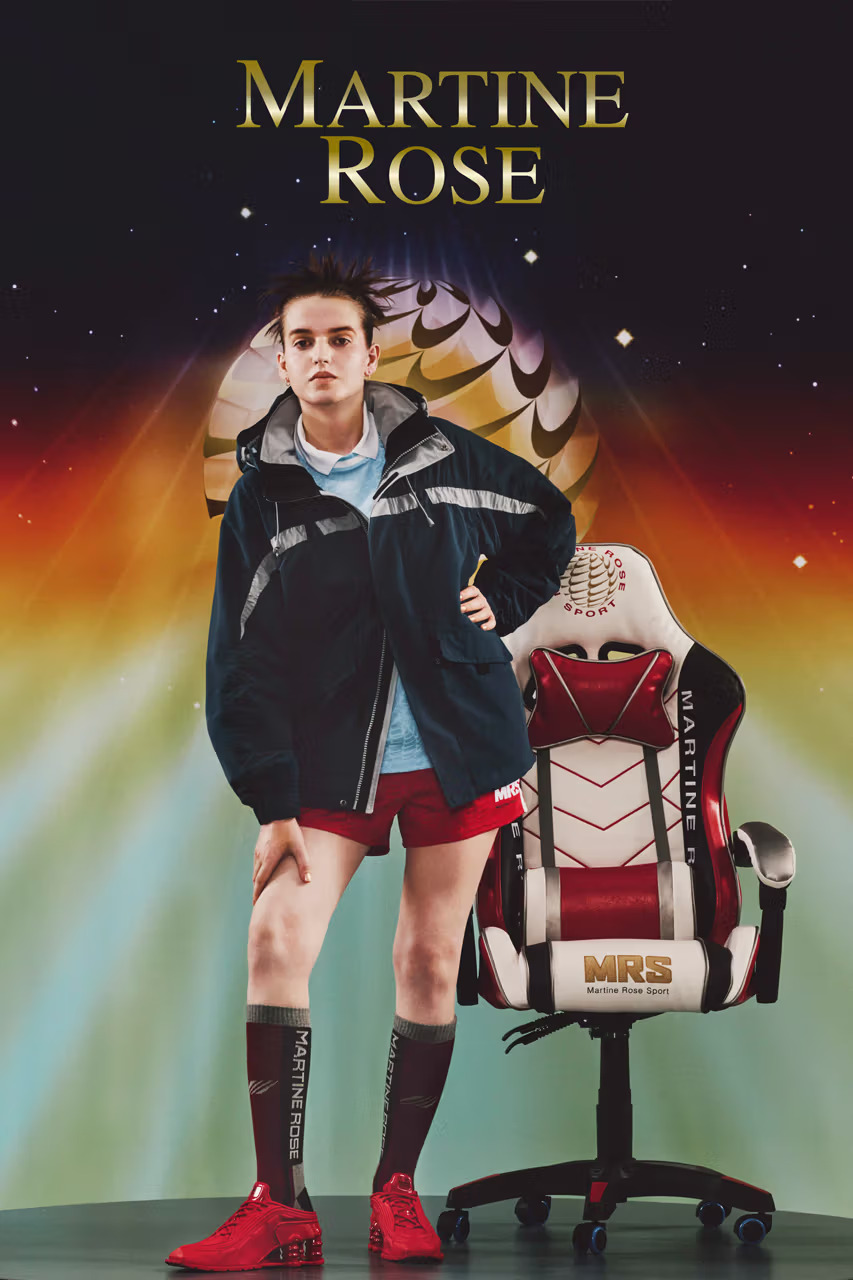 지난 2023 협업은 여성 축구를 주제로 했죠. 저는 늘 ‘풋볼 톱’을 제 컬렉션에서 반복적인 모티브로 사용해왔어요. 이번에도 풋볼 요소가 들어간 건 자연스러웠어요. 또 캐스팅이요. 제게 낯설었던 커뮤니티를 찾아 연결하는 과정이 이번에도 핵심이었어요. 그리고 샥스는 이제 정말 마틴 로즈를 상징하는 아이템이 된 것 같아요.