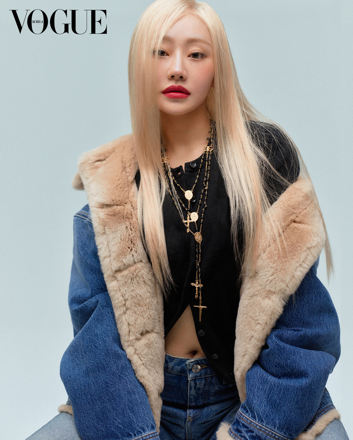 Beauty Inside K-팝과 패션은 떼려야 뗄 수 없다는 건 모두가 아는 사실이다. 그런데 아이돌의 뷰티는 패션보다 더 많은 걸 보여준다. 쥴리의 무결점 피부는 ‘에버라스트 파운데이션 #3W’. 아이 메이크업은 ‘에버아이콘 아이 팔레트 #01 앰버 비너스’. 두 뺨은 ‘치크 앤 아이 매치 블러셔 #02 조이풀 피치’. 입술은 ‘마이 립스틸로 스컬프트 사틴 립스틱 #MY 2018’. 제품은 돌체앤가바나 뷰티. 의상은 돌체앤가바나(Dolce&Gabbana).