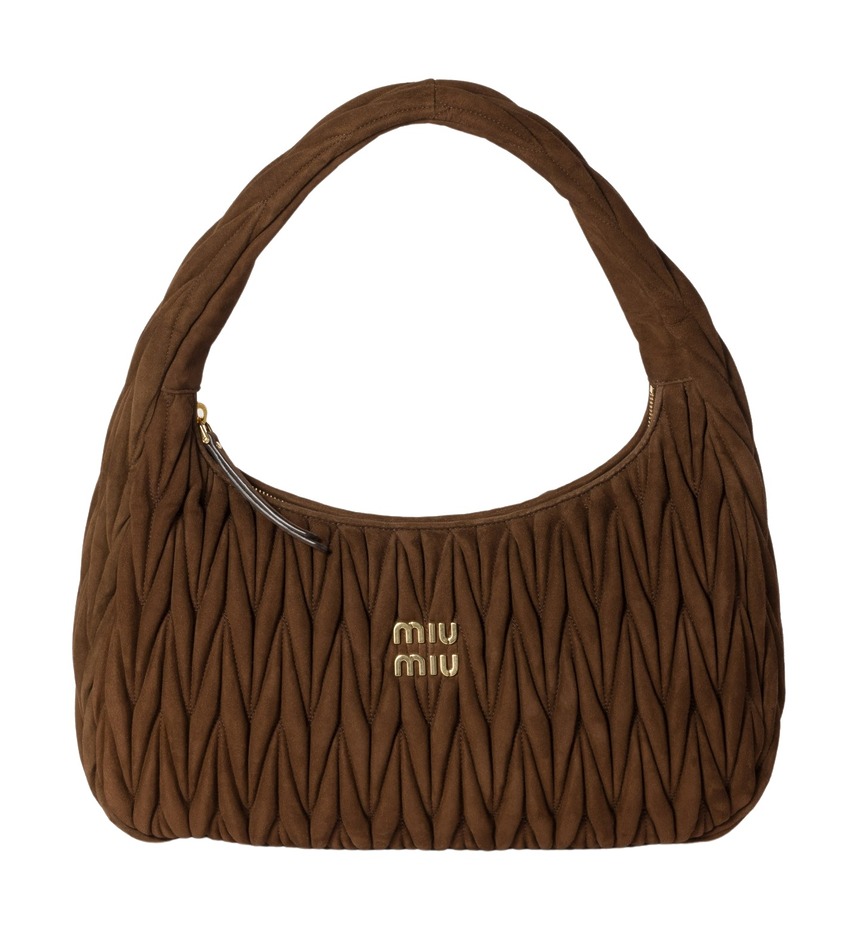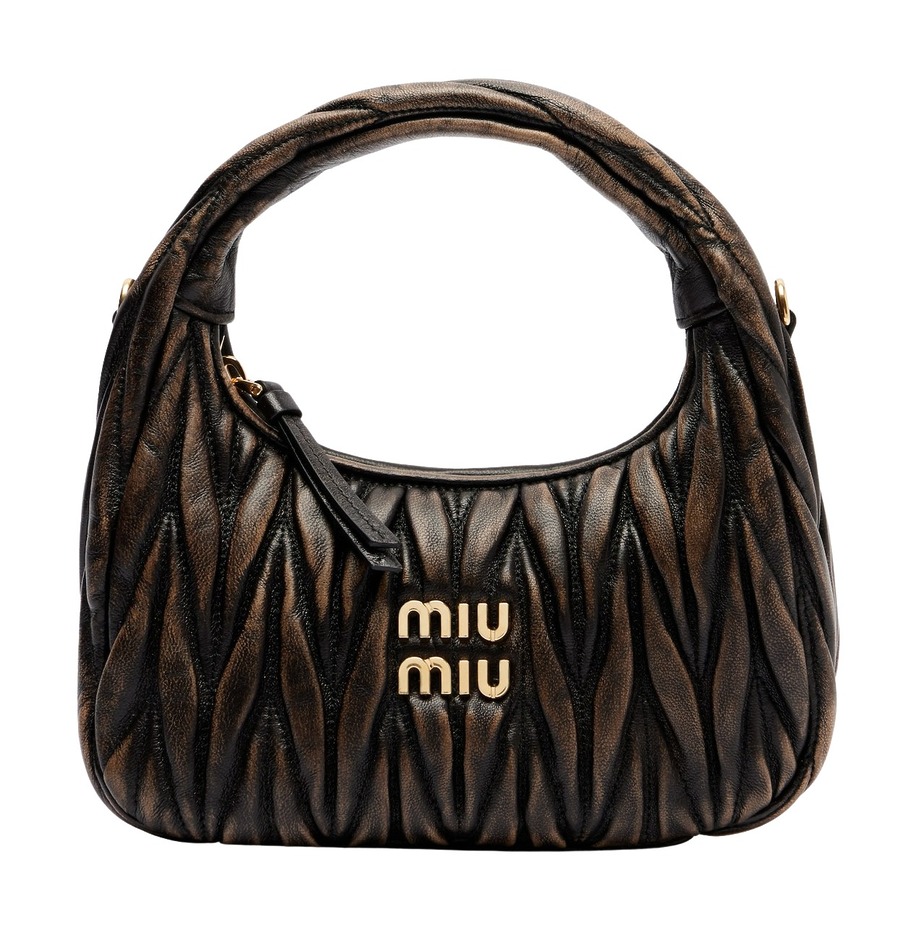 ‘완더(Wander)’는 2022 가을/겨울 시즌 첫선을 보인 뒤 타임리스 아이템이 된 히어로 백입니다. 곡선형 톱 핸들과 본체에 새겨진 미우미우 로고가 특징으로 브랜드 애호가들 사이에서 여전히 인기가 높으며, 다양한 사이즈와 컬러, 소재로 출시되고 있습니다.