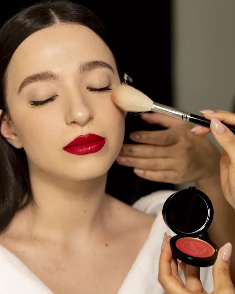 이탈리아를 비롯해 유럽 전역에서 활동 중인 메이크업 아티스트 바르바라 델 사르토는 이렇게 설명합니다. “블러셔 전성기였던 1980년대에는 ‘드레이핑(Draping)’ 기법이 유행했어요. 블러셔를 광대뼈 부위에서 관자놀이 쪽으로 발라 자연스러운 리프팅 효과를 주는 방식이었죠. 하지만 지속력이 늘 문제였습니다. 크림 블러셔든, 파우더 블러셔든 금방 사라졌거든요. 그래서 두 가지 제형을 같이 써서 색을 고정하는 아이디어를 고안했습니다. 그 방법이 바로 ‘블러시 스태킹’입니다.”