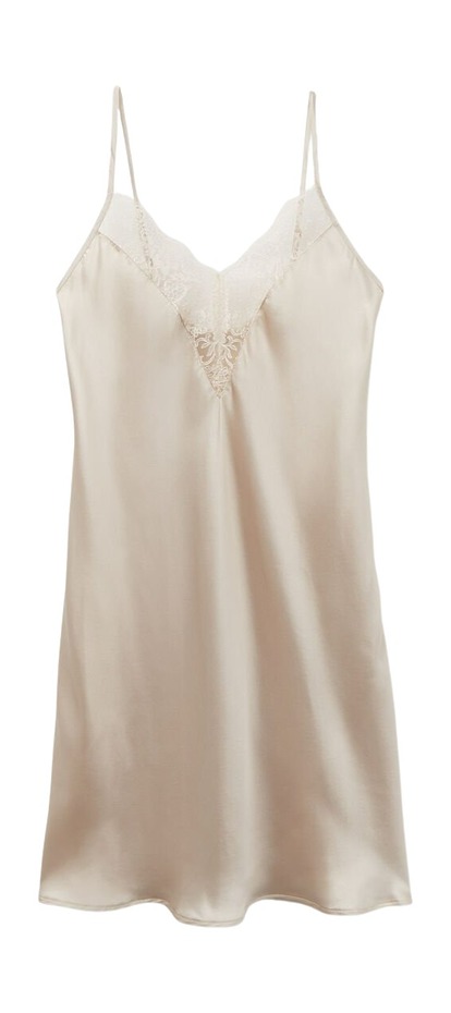 슬립 드레스를 선호하지 않는다면, 캐미솔과 슬립 스커트로 구성된 투피스는 어떨까요? 투피스의 장점은 함께 입어도 좋지만, 다른 아이템과 조합해 전혀 새로운 룩을 만들 수 있다는 거죠. 더 캐주얼한 느낌을 원한다면 레이스 캐미솔에 청바지를 매치해도 좋고, 추운 날씨에는 슬립 스커트 위에 니트를 입어도 잘 어울립니다. 변주를 즐기는 여러분이라면 시도할 만한 아이템이고요.