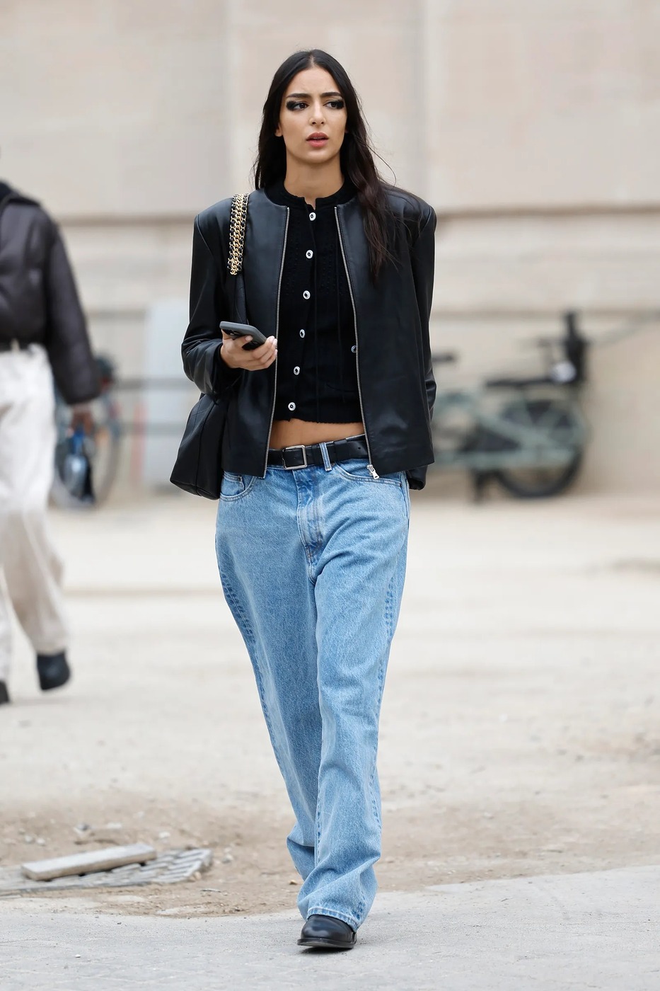 카디건과 슬림 진 조합의 <보그>식 해답은? 바로 파리 패션 위크에서 포착한 치오마 나디 스타일입니다! 루프 니트 카디건 재킷과 슬림한 진, 깜찍한(?!) 리본 플랫 슈즈를 매치한 후 양말까지 신어 포근함에 구조적인 밸런스를 더해보세요. 볼륨과 라인의 대비야말로 패션 에디터들이 사랑해 마지않는 비밀 룩이랍니다.