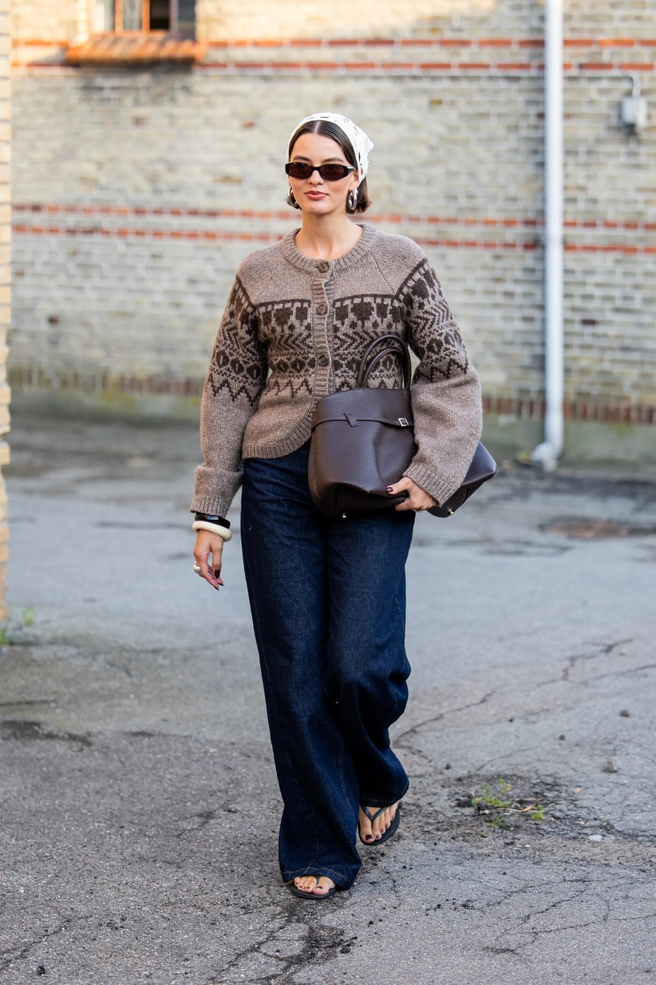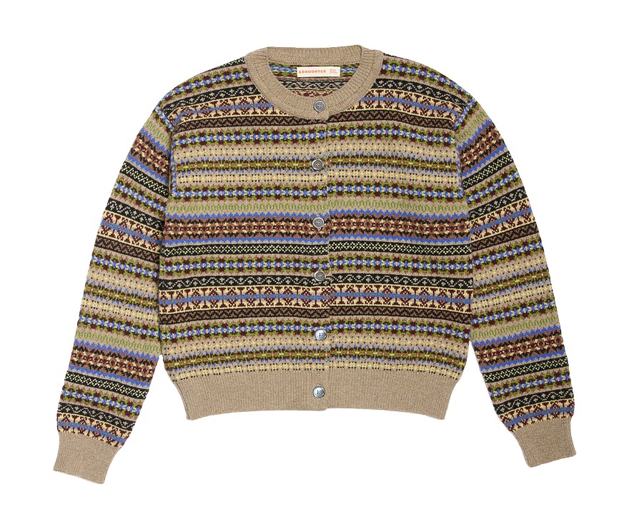 빈티지 감성을 끌어올리는 페어 아일 카디건은 브라운이나 카키 톤의 가을 색으로 골라보길 추천해요. 여기에 어두운색 청바지를 매치하면 클래식한 멋이 배가되는데요. 중고 매장 제품이든, 앤도터(&Daughter)의 핸드메이드 제품이든 상관없습니다. 조금 촌스러워 보여도 괜찮아요. 그게 바로 요즘식 레트로 시크의 진짜 매력이니까요.