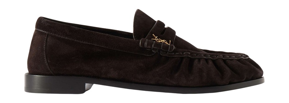 생 로랑르 로퍼 로고 임벨리시드 스웨이드 로퍼