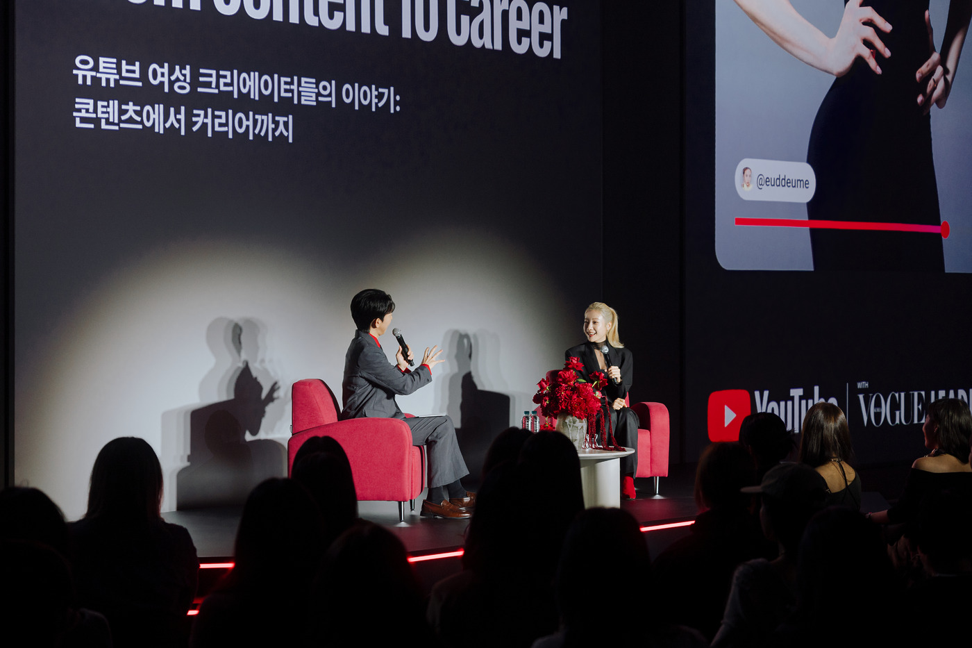 ‘유튜브 여성 크리에이터들의 이야기: 콘텐츠에서 커리어까지’는 다양한 방식으로 여성에게 영감을 건네온 ‘보그 리더’와 유튜브가 함께 준비한 이벤트다. <보그> 무빙 커버 스튜디오와 키 링 DIY 존, 아담한 카페 등 세심하게 마련된 스폿이 곳곳에서 발길을 붙잡았지만 열기가 가장 뜨거웠던 순서는 한국 여성 유튜브 크리에이터 4인이 나선 토크 세션이었다. 대한민국 대표 운동 크리에이터 심으뜸, 확고한 취향과 감성으로 패션과 라이프스타일을 재해석하는 수사샤, 일상의 사소한 순간으로 웃음과 공감을 이끌어내는 사내뷰공업의 김소정 PD, 뷰티 콘텐츠라는 신대륙을 개척한 이사배까지, 자신만의 개성으로 세상과 소통하고, 이를 기반으로 탄탄한 커리어를 쌓아온 크리에이터 4인은 지속 가능한 도전을 이어온 노하우를 아낌없이 공개하며 공감대를 형성했다.