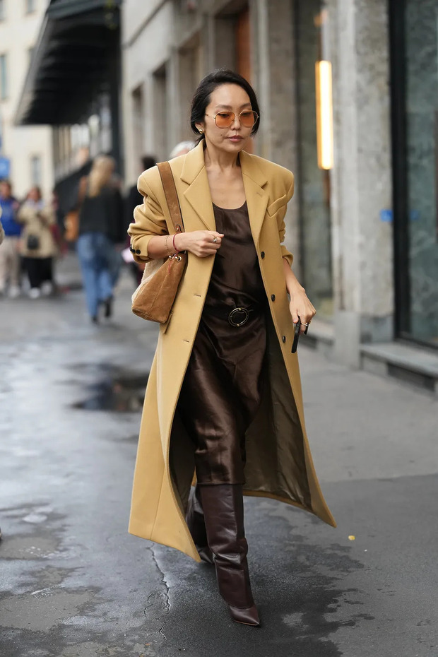 뭘 많이 걸치지 않아도 멋있는 ‘롱부츠에 미디 원피스’ 조합