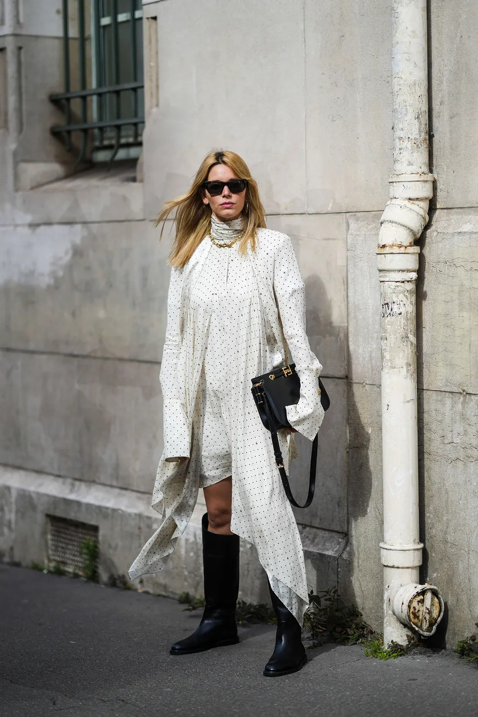 부츠와 원피스, 혹은 아우터의 컬러를 맞추면 조합하기 쉽습니다. 통일된 색감이 다리를 한층 길어 보이게 하고, 전체적으로 안정감을 주죠. 만약 패턴이 화려한 원피스를 시도해보고 싶다면 단색 아우터를 걸쳐주세요. 난도가 낮아집니다.