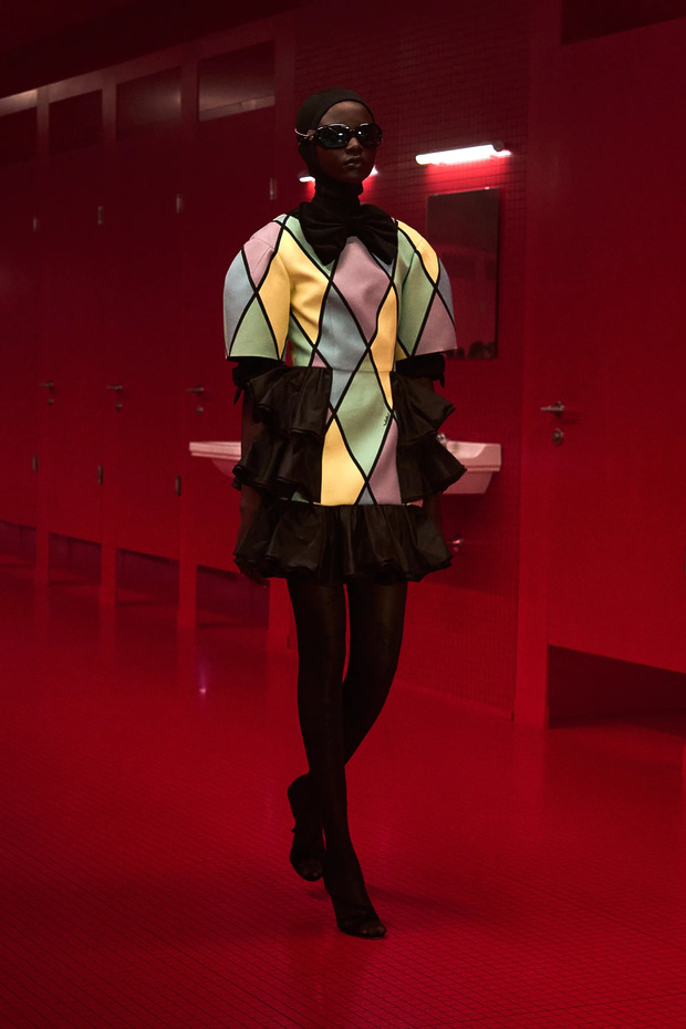 그 외에도 사례는 넘쳐납니다. 알투자라는 브랜드의 시그니처와도 같은 하이넥 실루엣을 아가일 니트에 적용했고, 발렌티노는 아가일 패턴에서 영감받은 미니 드레스를 선보였죠.