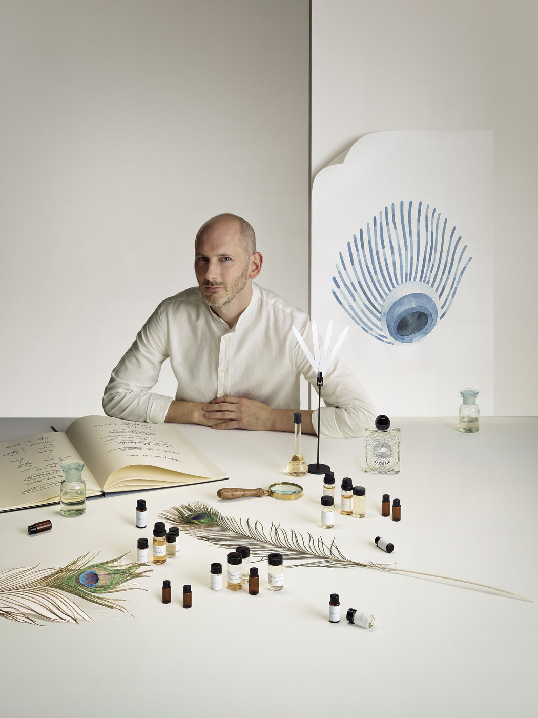 MEMORIES 첫 후각적 기억은 어머니의 향수 가게. 수백 가지 향에 자연스럽게 둘러싸여 어린 시절을 보냈다. 다양한 향이 뒤섞인 공간은 혼란스러웠지만 때로는 아름다운 선율처럼 느껴질 때도 있었다. 지금도 머릿속에서 또렷이 떠오르는 향이 있다. 시간이 지나고 조향사로 일하기 시작하면서 다양한 향과 원료의 인상을 의식적이고 체계적으로 기록해 나만의 ‘향 라이브러리’를 구축했다. 창작물을 위한 팔레트처럼 활용한다.