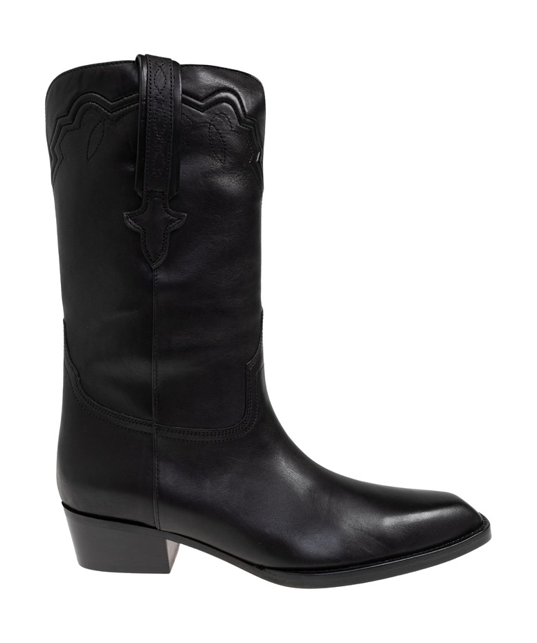조금 더 디테일을 주고 싶다면 카우보이 부츠를 추천합니다. 특별한 날에 힘주기도 좋고, 데일리로 신어도 무리 없습니다. 명랑한 분위기를 살려 버블 스커트에 매치해보세요.