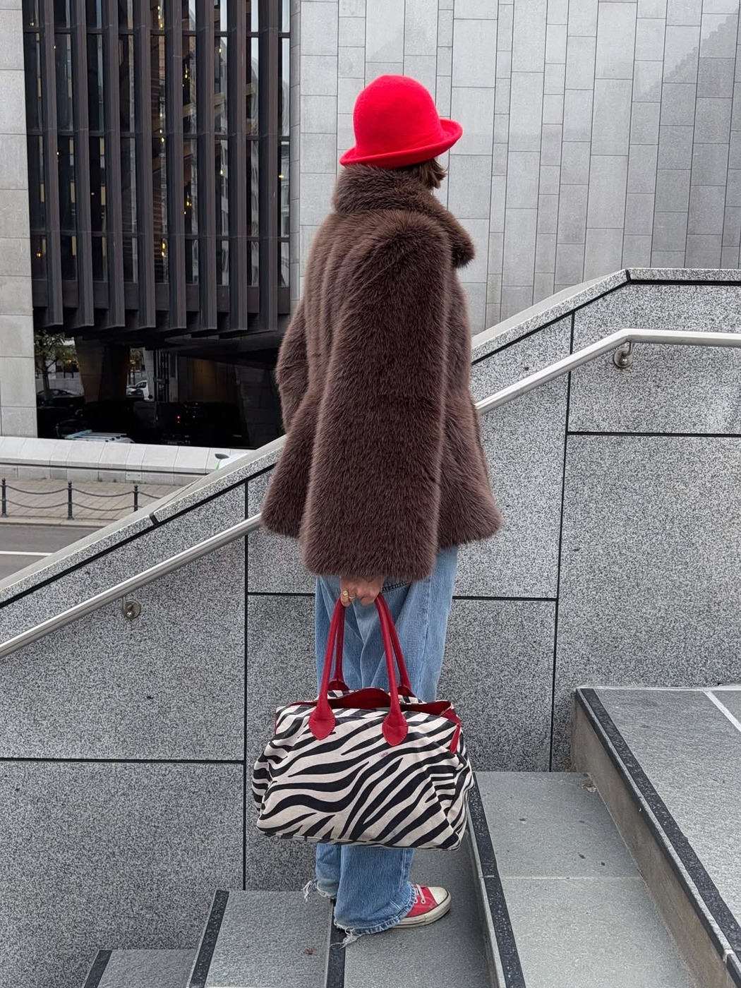 아직 애니멀 프린트가 과하게 느껴지지만 한 번쯤 시도해보고 싶다면, 가방부터 시작해보길 추천합니다. 퍼 재킷이나 차분한 블랙 코트, 캐주얼한 데님 재킷까지, 따지고 보면 어울리지 않는 스타일이 없어요. 굳이 과감한 포인트로 생각하기보다는 룩 전체에 살짝 힘을 주는 정도로 연출하면 되죠. 올겨울 가장 쉬운 모험이 바로 작은 프린트 백이에요.