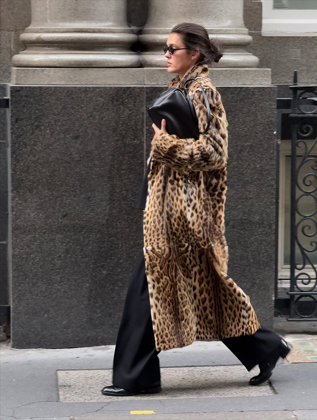 제니퍼 로렌스도 입었던 레오파드 코트 이야기도 빼놓을 수 없겠죠? 너무 과하거나 가식적일 것 같다고요? 오히려 그 반대입니다. 차분하게 정돈된 올 블랙 룩에 어우러진 레오퍼드 롱 코트는 주얼리 하나 없이도 우아하고 여유롭죠. 블랙 와이드 팬츠나 블랙 데님, 여기에 심플한 로퍼만 더해주면 됩니다.