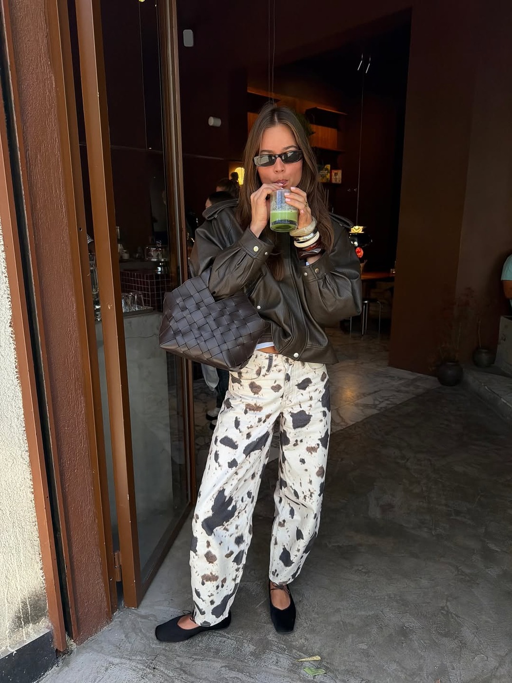 매일 입는 브라운 스웨이드 재킷이 살짝 지겨울 타이밍입니다. 오늘만큼은 안전지대를 벗어나 좀 다른 에너지를 즐기고 싶다는 생각이 들 때 쓸모 있는 게 바로 애니멀 프린트 재킷이에요. 레오파드든 카우 패턴이던 다 좋습니다. 프린트의 브라운 컬러가 신기할 정도로 이 계절의 톤에 완벽히 스며들거든요. 더 이상의 과한 장식이나 레이어링은 필요 없습니다. 재킷 하나만 바꿔줘도 기분 전환이 될 거예요.