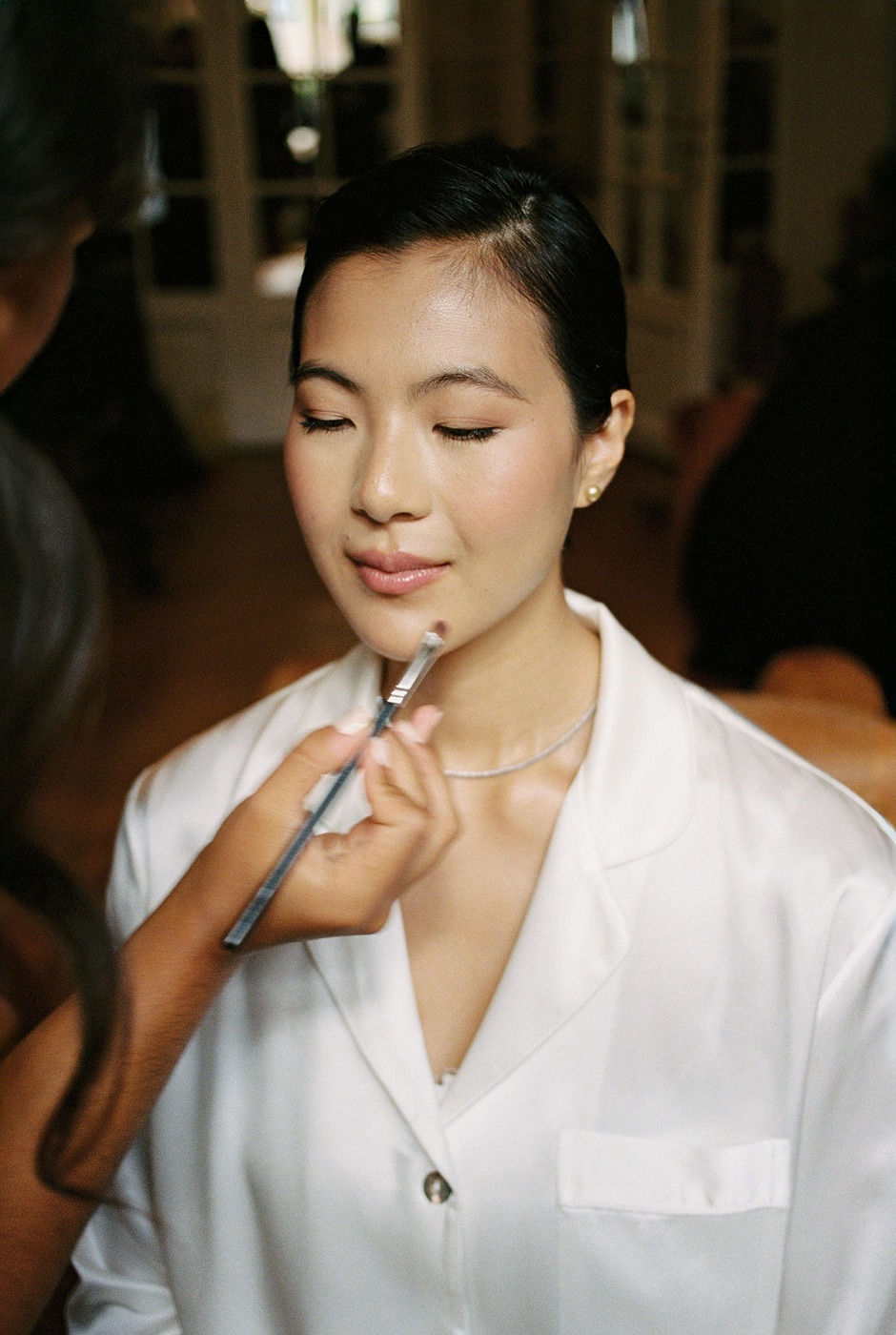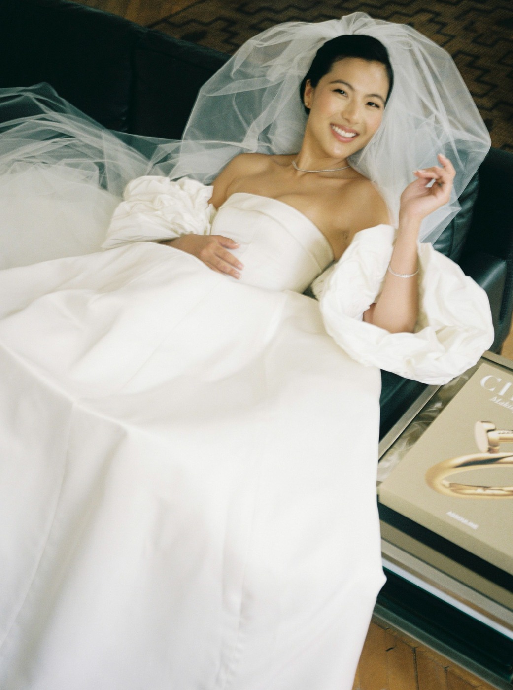 결혼식에서는 디자이너 앤드루 권의 드레스를 입었습니다. 다혜 씨는 웨딩업계 네트워킹 행사에서 우연히 앤드루 권을 만났는데, 그곳에서 두 사람은 곧바로 같은 한국인으로서의 유대감을 느꼈습니다. 만난 지 몇 주 후, 앤드루 권의 팀에서 다혜 씨를 웨딩 쇼에 초대했습니다. 그곳에서 다혜 씨는 두꺼운 새틴 소재의 스트랩리스 드레스를 보고 반했습니다. “며칠 뒤에 그 드레스를 입어보러 갔어요. 하지만 처음부터 마음에 꼭 들었던 건 아니었어요”라고 그녀는 말합니다. “그때까지 맨해튼에 있는 웨딩 살롱을 열 곳도 넘게 가봤지만 아직 이거다, 싶은 드레스를 찾지 못하고 있었어요. 점점 지치고 기대를 잃으면서 제가 본 모든 하얀 드레스가 기억 속에서 마구 뒤섞였죠. 하지만 제 직감에 딱 맞는 게 아니면 그 무엇도 타협하지 않기로 결심했어요.”