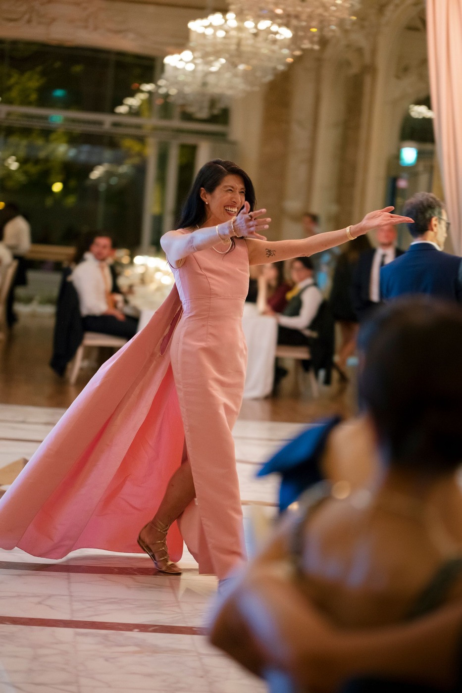 만찬과 피로연이 끝난 후에는 밤늦게까지 애프터 파티가 이어졌습니다. 다혜 씨는 “저희가 눈치를 못 채서 행사장 쪽에서 조명을 켜야 할 때까지 파티가 계속됐어요”라고 웃으며 말합니다. “모두 진심으로 즐거워하고, 편안한 모습으로 그 시간을 즐기고, 평생 간직할 추억을 함께 만드는 걸 보면서 저희는 너무나 행복했어요. 모든 것에 너무나 감사해요. 하지만 그 무엇보다도, 저희 손님 모두 세계 곳곳에서 파리에 무사히 도착했고, 따뜻한 마음으로 돌아갔다는 점에 정말 감사해요.”