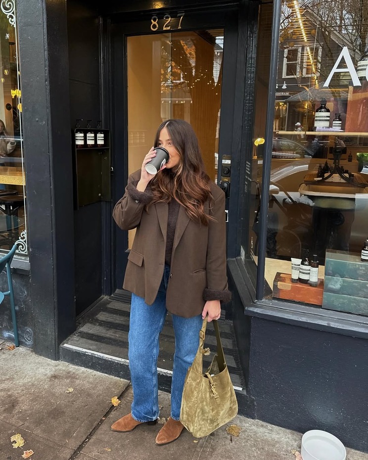 그럴 땐 브라운 앵클 부츠를 신어보세요. 가을에서 겨울로 넘어가는 이맘때, 기분 내기 딱 좋습니다. 익숙한 앵클 부츠의 색상만 브라운으로 바꾸는 것이기에 접근성 낮으면서, 차려입은 느낌을 낼 수 있죠. 청바지가 중심을 잡아주니 나머지 코디야 식은 죽 먹기고요. 거리 위의 ‘청바지에 브라운 앵클 부츠’ 스타일링, 빠르게 훑어보시죠.