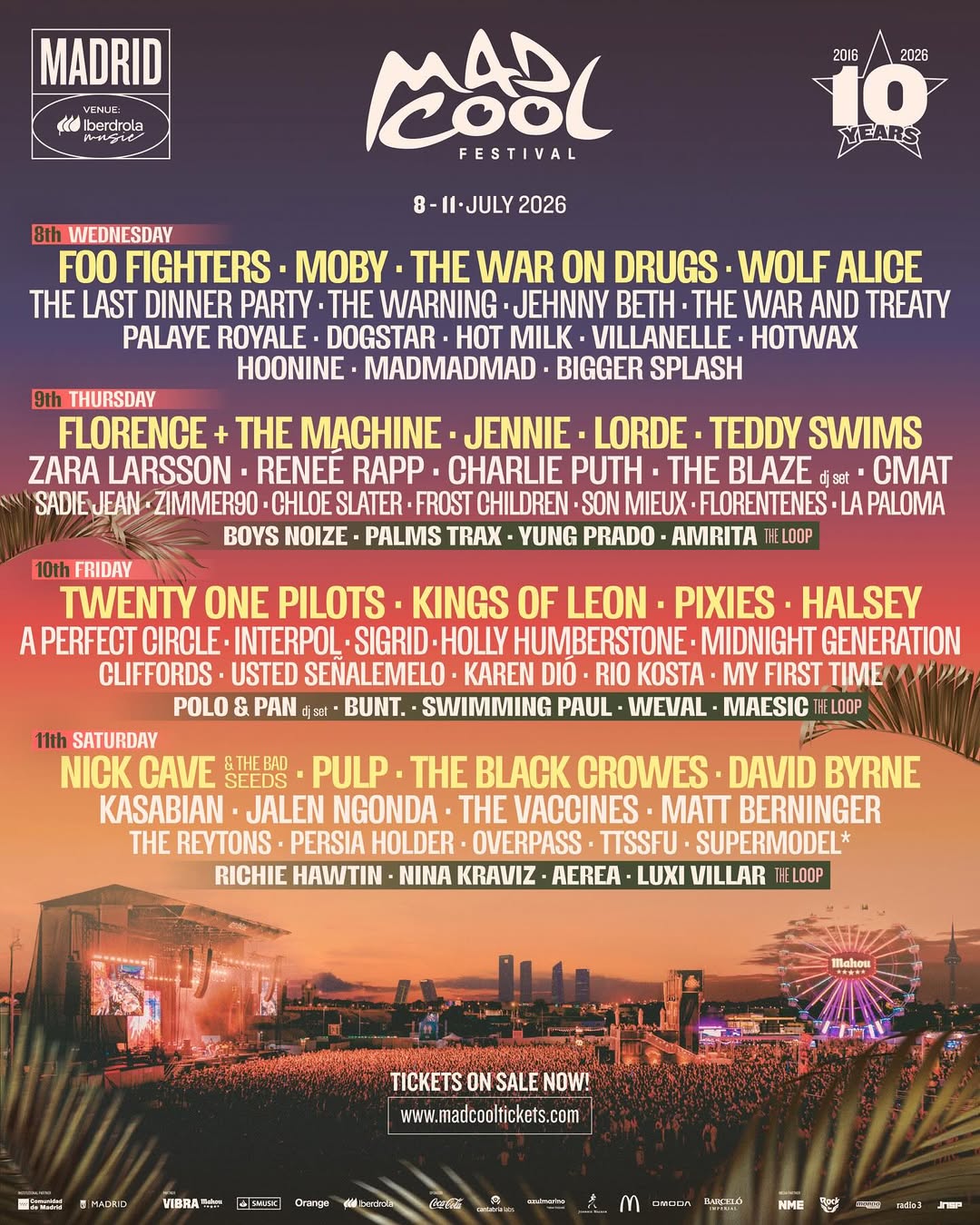 2026 매드 쿨 페스티벌은 오는 2026년 7월 8일부터 11일까지 스페인 마드리드에서 열립니다. 라인업에 따르면, 제니는 2026년 7월 9일 헤드라이너로 나섭니다.