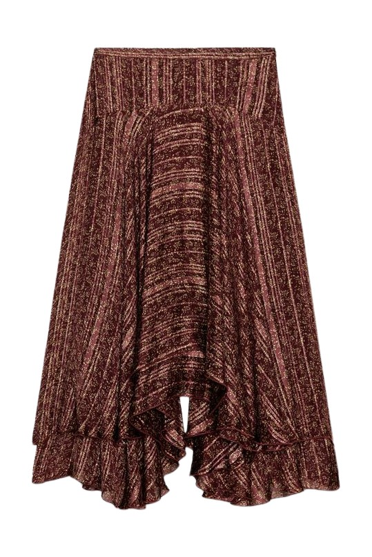 2025년 가을, 지금은 어떨까요? 우아한 실루엣은 그대로지만, 스커트에 달린 프린지 장식은 보다 고급스러워졌고 예상치 못한 프린트가 더해졌습니다. 보헤미안 스커트의 재발견이라고 해도 과언이 아닐 정도의 재해석이 이뤄진 거예요.