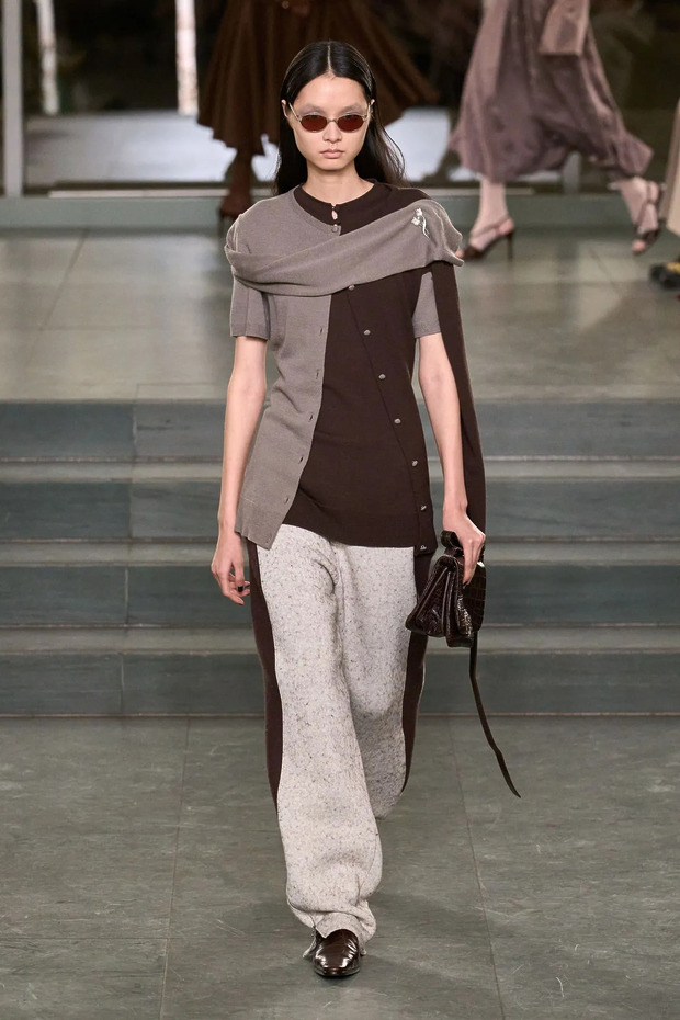 청바지에도 계절이 있습니다. 여름엔 연청, 겨울엔 브라운. 올해는 밀크 초콜릿부터 다크 초콜릿까지 폭넓은 톤의 데님이 강세입니다. 푸른 기운이 빠진 대신 따뜻한 색감이 더해져 겨울 외투와 곧잘 어울리거든요. 브라운 데님은 블랙보다 부드럽고, 인디고보다 따뜻한 인상을 남깁니다. 평소 블랙 진을 자주 입는다면, 같은 실루엣의 브라운 데님으로 교체해보세요.
