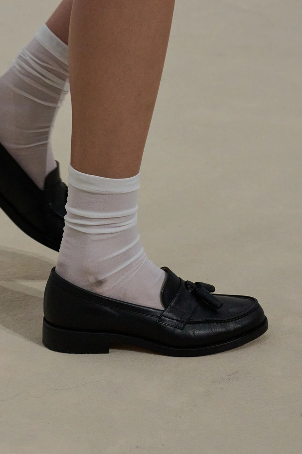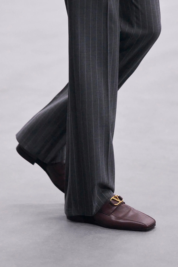 날이 갈수록 좁아지고 있는 것은 바지통뿐만이 아닙니다. ‘홀쭉이 스니커즈’의 영향인지, 최근에는 로퍼의 셰이프도 점점 갸름해지고 있거든요. 정점을 찍은 것은 발렌티노와 미우미우였습니다. 두 브랜드 모두 밑창이 얇고(발렌티노의 로퍼는 얼핏 밑창이 소멸한 것처럼 보였습니다) 앞코가 뾰족한 로퍼를 런웨이에 올렸죠. 이런 포인티드 토 로퍼는 레트로한 분위기를 자아낸다는 점도 꼭 알아두세요!