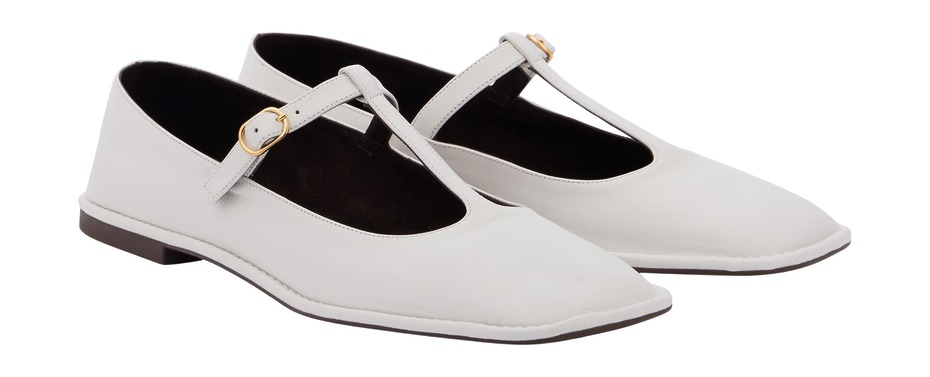 더 로우Square T-Strap 레더 발레리나 플랫