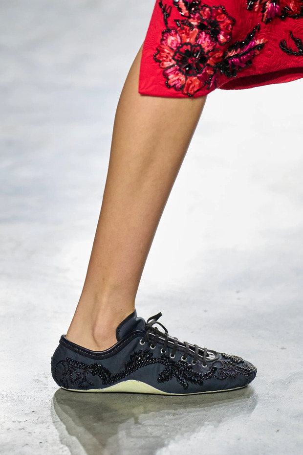 올해 초, 레트로한 분위기의 스니커즈를 출시하며 트렌드를 한 차례 선도하기도 했던 드리스 반 노튼이 빠질 수 없겠죠. ‘홀쭉이 스니커즈’의 실루엣을 그대로 차용하되, 비즈를 수놓거나 플로럴 패턴을 입히며 고상한 디자인을 선보였습니다. 나일론 소재로 만든 덕분에 실용적이기까지 하군요.