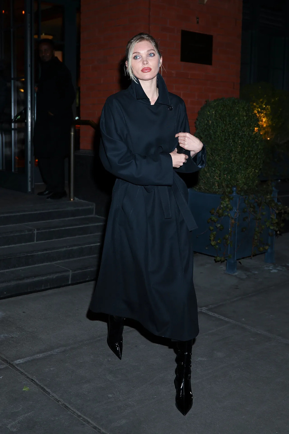 트렌치 코트처럼 티피컬한 아이템은 막상 사놓고 몇 번 못 입는 경우가 많죠. 그럴 땐 컬러를 블랙처럼 무난하고 쉬운 색으로 바꾸는 겁니다. 반복돼도 질리지 않을 색으로요. 엘사는 블랙 트렌치를 완전히 잠가 원피스처럼 연출하고, 부츠로 마무리했습니다. 다른 날엔 청바지, 또 다른 날엔 미니스커트에도 자연스럽게 어울릴 아이템이죠. 처음 도전하는 아이템일수록 컬러는 블랙, 네이비, 차콜처럼 익숙한 색으로 시작하세요. 더 자주, 오래 활용할 수 있습니다.