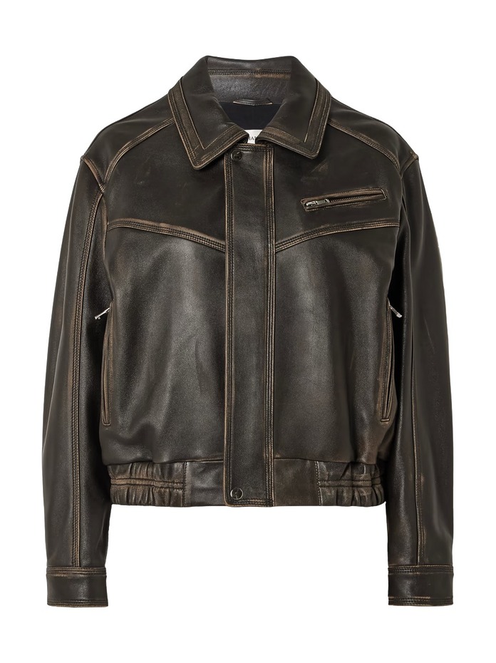 누어 해무어클린트 오버사이즈 패널 디스트레스드 레더 봄버 재킷