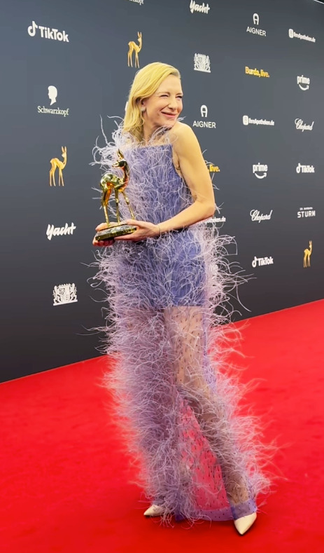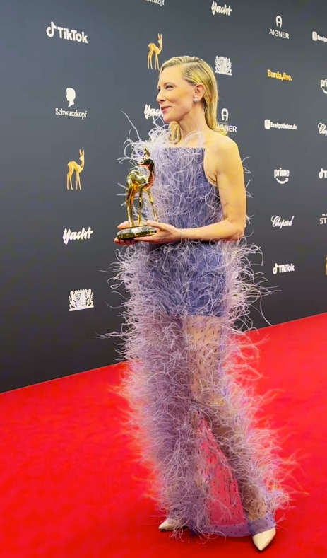 현지 시간으로 13일 독일 뮌헨에서 열린 ‘2025 밤비 어워드(2025 Bambi Awards)’에서도 그녀는 획기적인 드레스로 시선을 사로잡았습니다. 블란쳇은 스텔라 매카트니의 매혹적인 라일락 컬러 드레스를 입고 등장했습니다.