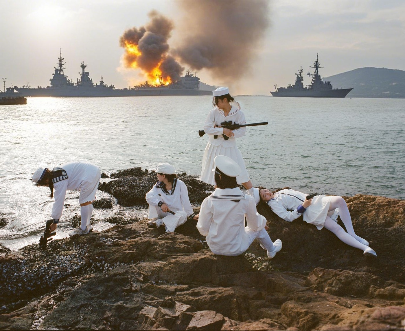 홍콩 포토그래퍼의 ‘The White Barracks’ 시리즈. 권력 구조의 균열에 초점을 맞춥니다. 작가는 끊임없는 군사훈련에 참여하는 소녀 사관생도로 구성된 대대가 거주하는 가상의 섬을 상상합니다. 사관생도들은 매일 포격에 휩싸인 동료들을 멀리서 지켜보며 전장에 대비하길 갈망합니다. 동굴에 있는 전쟁의 잔해로 만든 조각품이 포화 속에서 이 대대가 한때 품었던 정신적인 삶, 믿음, 욕망을 기록합니다.