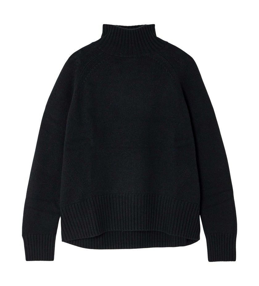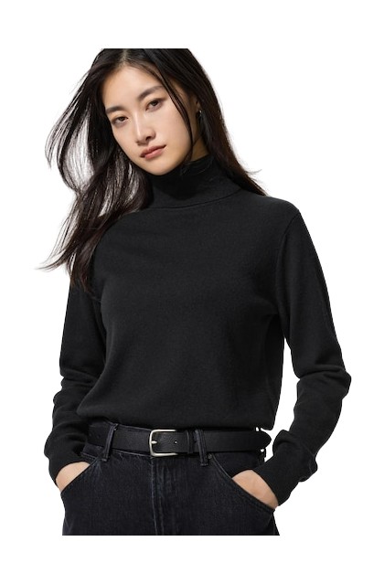 겨울을 위한 또 다른 핵심 아이템은 바로 터틀넥 캐시미어 스웨터입니다. 더 로우는 이를 2025~2026 가을/겨울 시즌의 ‘기본템’으로 만들어버렸죠. 사실 터틀넥 스웨터는 어디에 매치해도 무리가 없는 아이템입니다. 블레이저, 수트, 로브, 코트, 그리고 드레스까지 어디에나 잘 어울리잖아요. 특히 목이 긴 터틀넥을 고르면 접어서도 입고, 턱까지 높이 올려 입을 수도 있어 활용도가 높습니다. 스카프가 필요 없을 정도죠.
