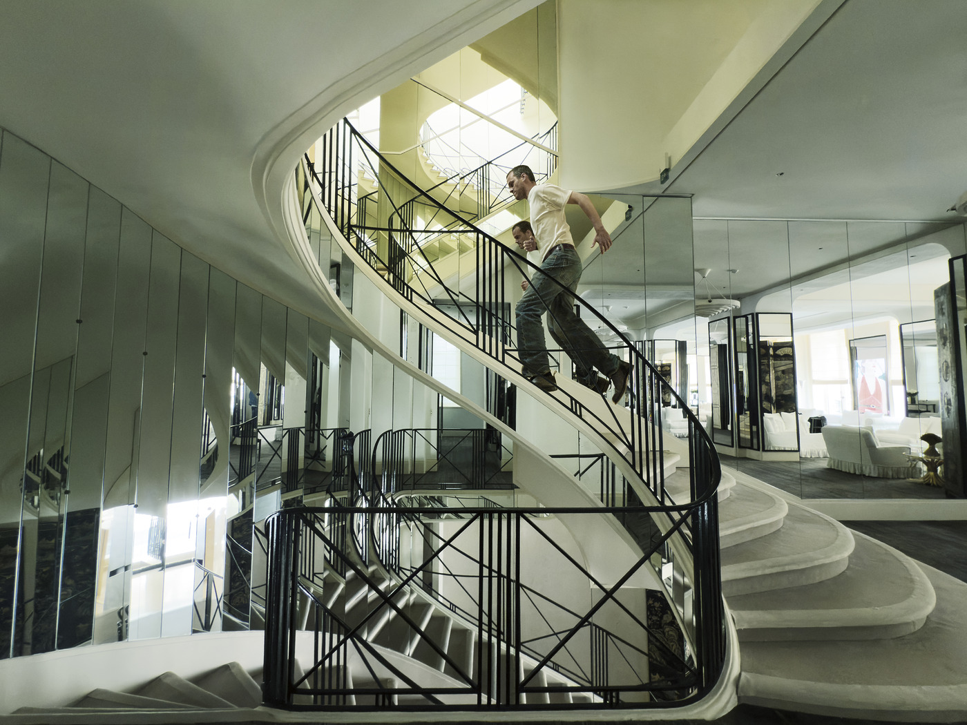 그는 우아한 몽수리 광장 거리로 안내했다. 여러 채의 좁은 집 정문을 지나 장미 덩굴이 드리워진 자갈길이 오르막으로 이어진다. 우리는 끝자락에서 멈춰 르 코르뷔지에가 설계한 흰색 모더니즘 아파트 건물을 감상했다. “이곳엔 아르누보 양식이나 1880년대 시골 부르주아풍 주택이 즐비한데, 길 끝에 와서는 펑! 하고 이 르 코르뷔지에 건물이 나타나는 거죠.” 그가 감탄하며 덧붙인다. “패션을 그만두면 가이드 투어를 할 수도 있겠군요.” 몇 블록 떨어진 다른 좁은 골목길에서 우리는 또 다른 모더니즘 유물을 지나쳤다. 넓은 정면이 아침 햇살을 받고 있었다. 블라지는 멈추지 않고 지나치더니, 다시 돌아서서 지나친 그 건물을 바라봤다. “얼마 전 이 집을 샀어요.” 그가 수줍게 고백했다.
