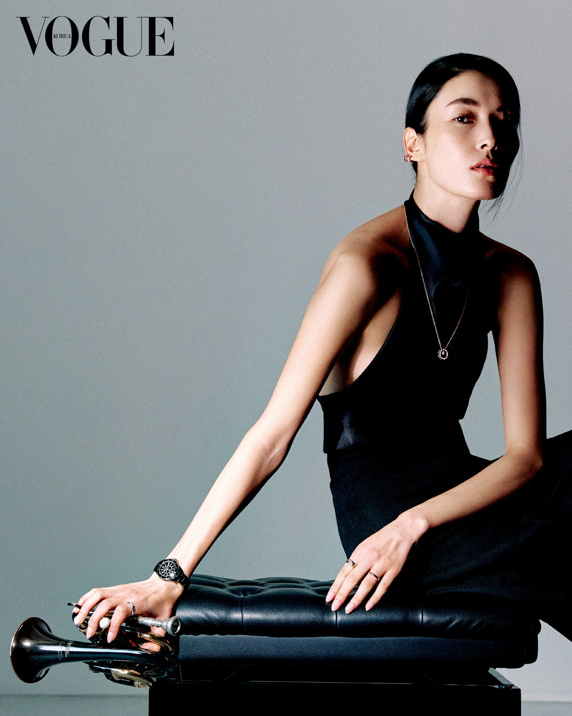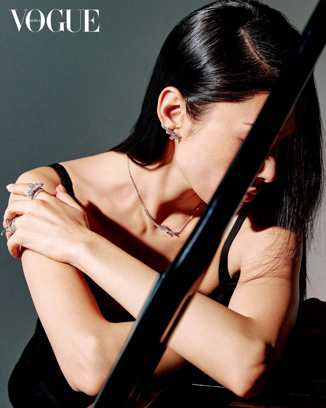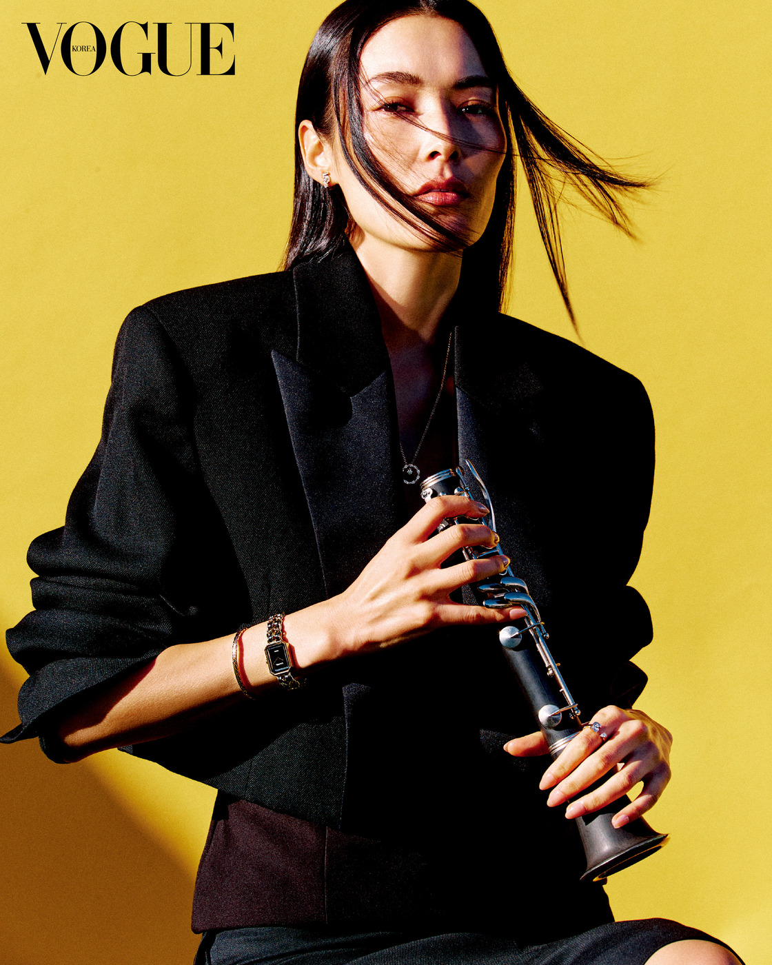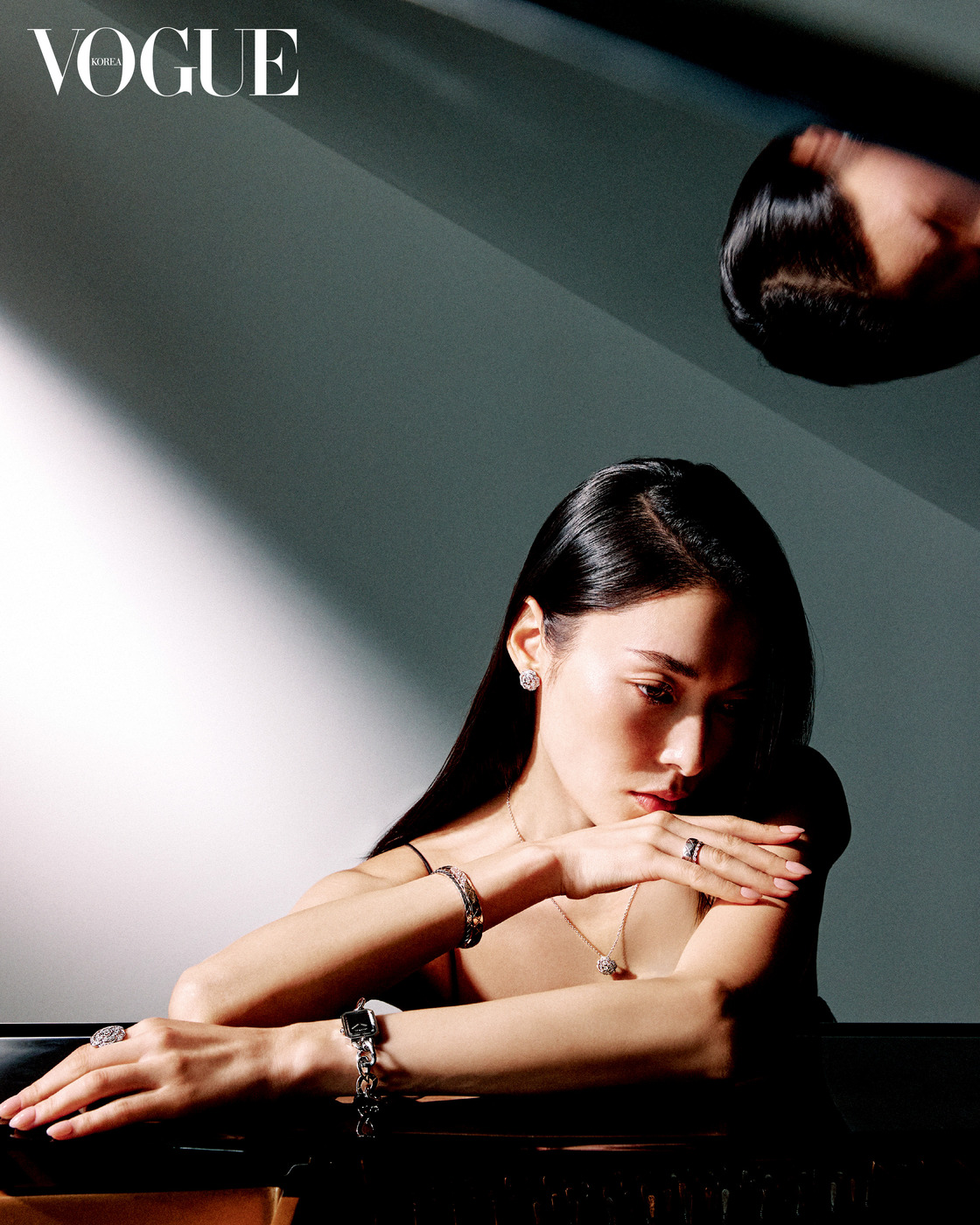 Quiet Moment 견고한 블랙 세라믹과 스틸로 이루어진 33mm 케이스의 ‘J12 워치 칼리버 12.2’. 18K 베이지·옐로 골드에 다이아몬드를 세팅한 ‘코코 크러쉬’ 반지 3개, 18K 화이트·베이지 골드에 다이아몬드를 세팅한 ‘코코 크러쉬’ 싱글 귀고리, 18K 베이지 골드에 다이아몬드를 세팅한 ‘코코’ 목걸이.