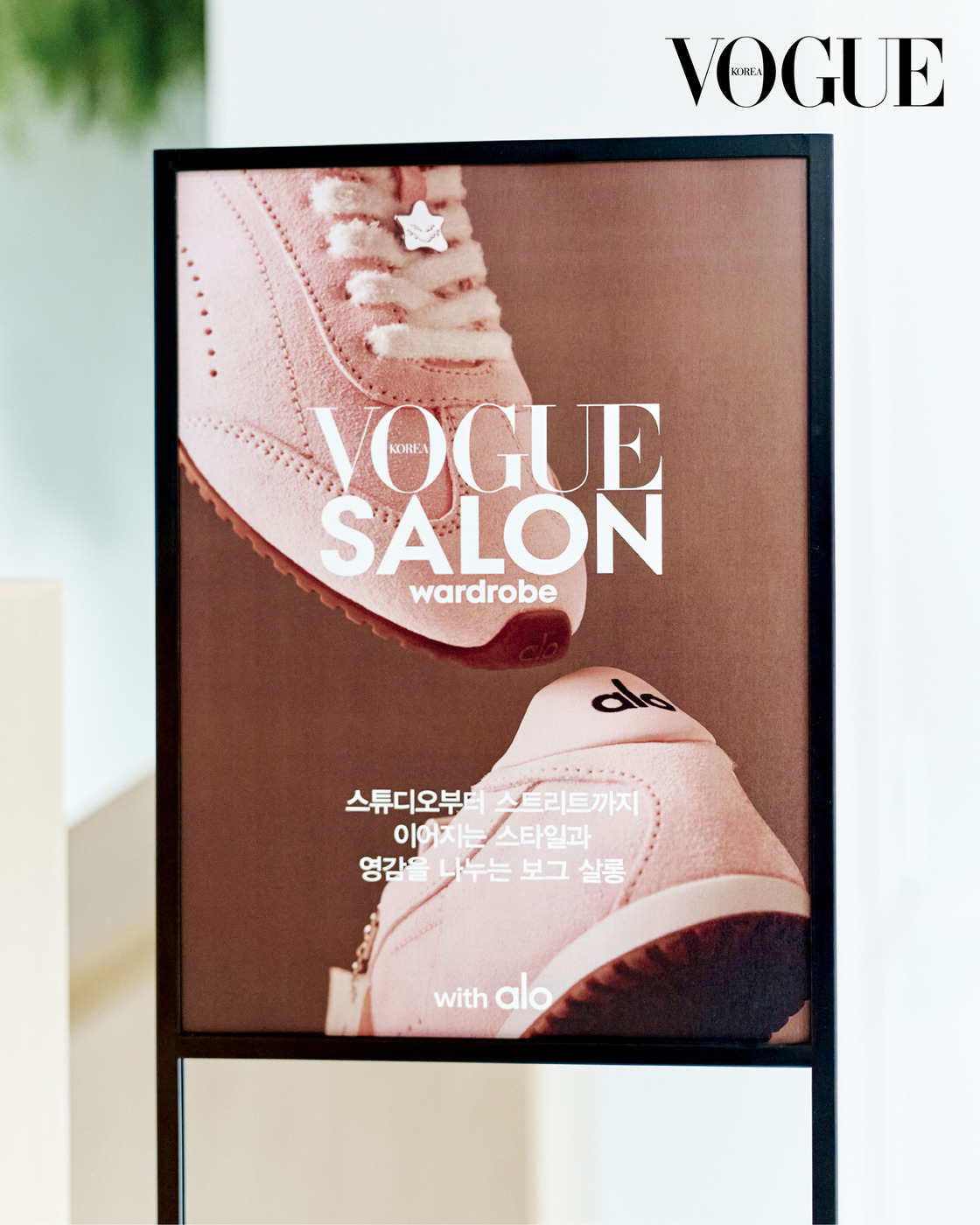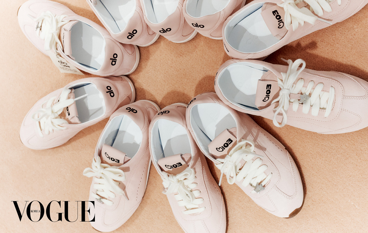 스니커즈’를 선보이며, 웰니스의 개념을 신발로 확장했다. 부드러운 스웨이드 소재와 날렵한 실루엣, 착화감이 좋은 밑창으로 완성해 편안함과 세련미의 완벽한 균형을 보여준다. 브랜드 정신을 집약한 이 신발은 앰배서더 지수의 낙천적 에너지를 닮은 컬러 ‘블룸 핑크’로 새롭게 탄생했다. 지난 10월 알로 도산 플래그십 스토어에서는 이번 협업을 기념하는 ‘보그 살롱’이열렸다. <보그> 손은영 패션 디렉터와 신은지 패션 에디터가 선셋 스니커즈를 소개하며 ‘입는 웰니스’를 선보였다. 운동할 때뿐 아니라 일상까지 아우르는 유연하고 탁월한 기능을 갖춘 의상이 오디언스의 눈길을 끌었다. 파스텔 핑크로 꾸민 아늑한 공간에서 디제잉이 흥을 돋우고 지수가 직접 그린 캐릭터 ‘슈몬’이 유쾌한 분위기를 더했다. 오직 한국에서만 만날 수 있는 리미티드 에디션 스니커즈가 함께하니 하루가 더 특별해졌다. 회사에서 짐으로 혹은 조깅하다가 모임으로 즉시 ‘체인지업’ 할 수 있는 하이브리드 스타일이 이날 알로 스타일링 클래스의 키포인트. 잘 입고, 웰빙하는 법을 배우며, 새로운 라이프스타일을 경험하는 순간이었다. VK