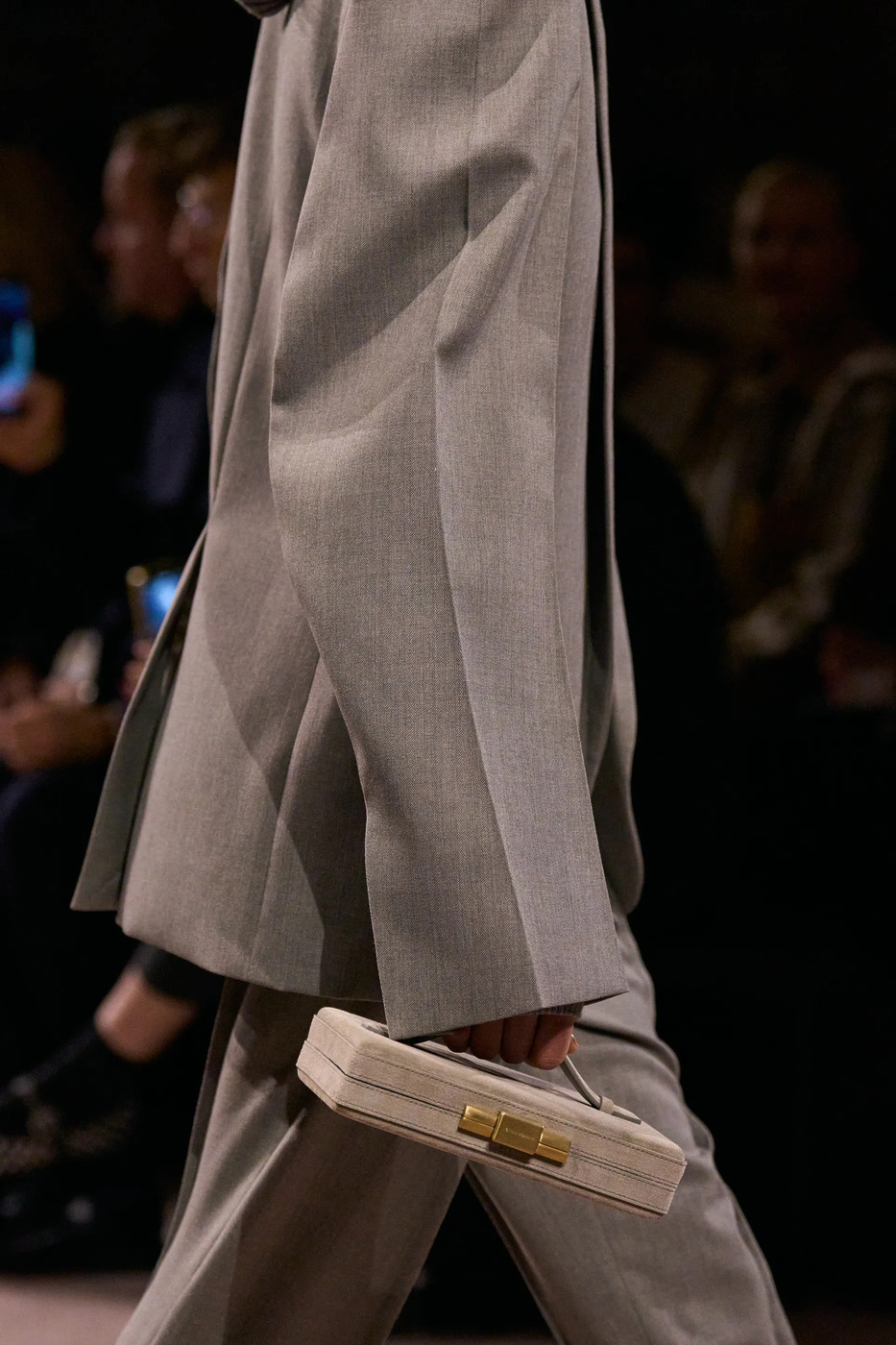 몇 년 사이 거리에서 흐물흐물한 형태의 ‘슬라우치 백’을 마주치는 빈도가 부쩍 늘었죠. 빅토리아 베컴은 이 흐름을 정면으로 반박하듯, 대학 시절 들고 다니던 전공 서적의 생김새를 똑 닮은 백을 선보였습니다. 백의 각진 모서리는 그 자체로 흥미를 유발하기에 충분했죠.