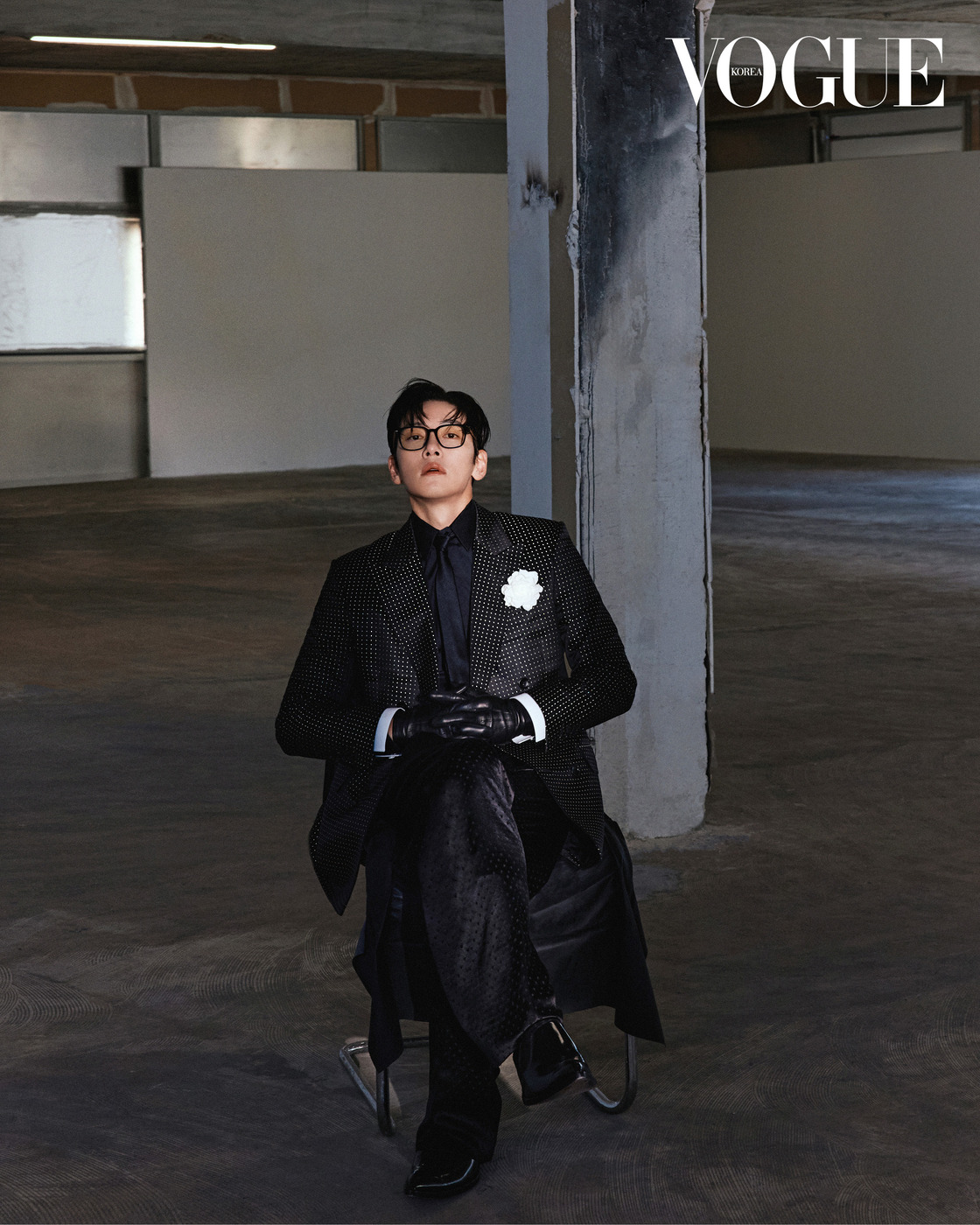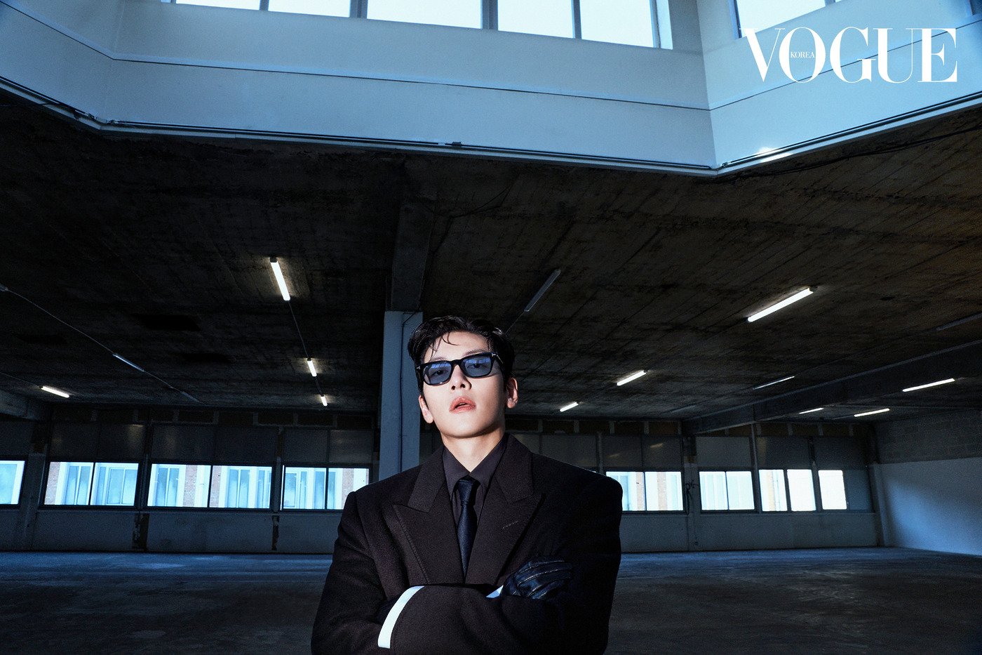 블랙은 소재에 따라 다른 분위기를 낸다. 실크와 가죽, 새틴으로 다양하게 표현한 블랙 테일러드 룩에 부드러운 각을 지닌 블랙 프레임 안경을 매치한 지창욱의 지적인 모습.
