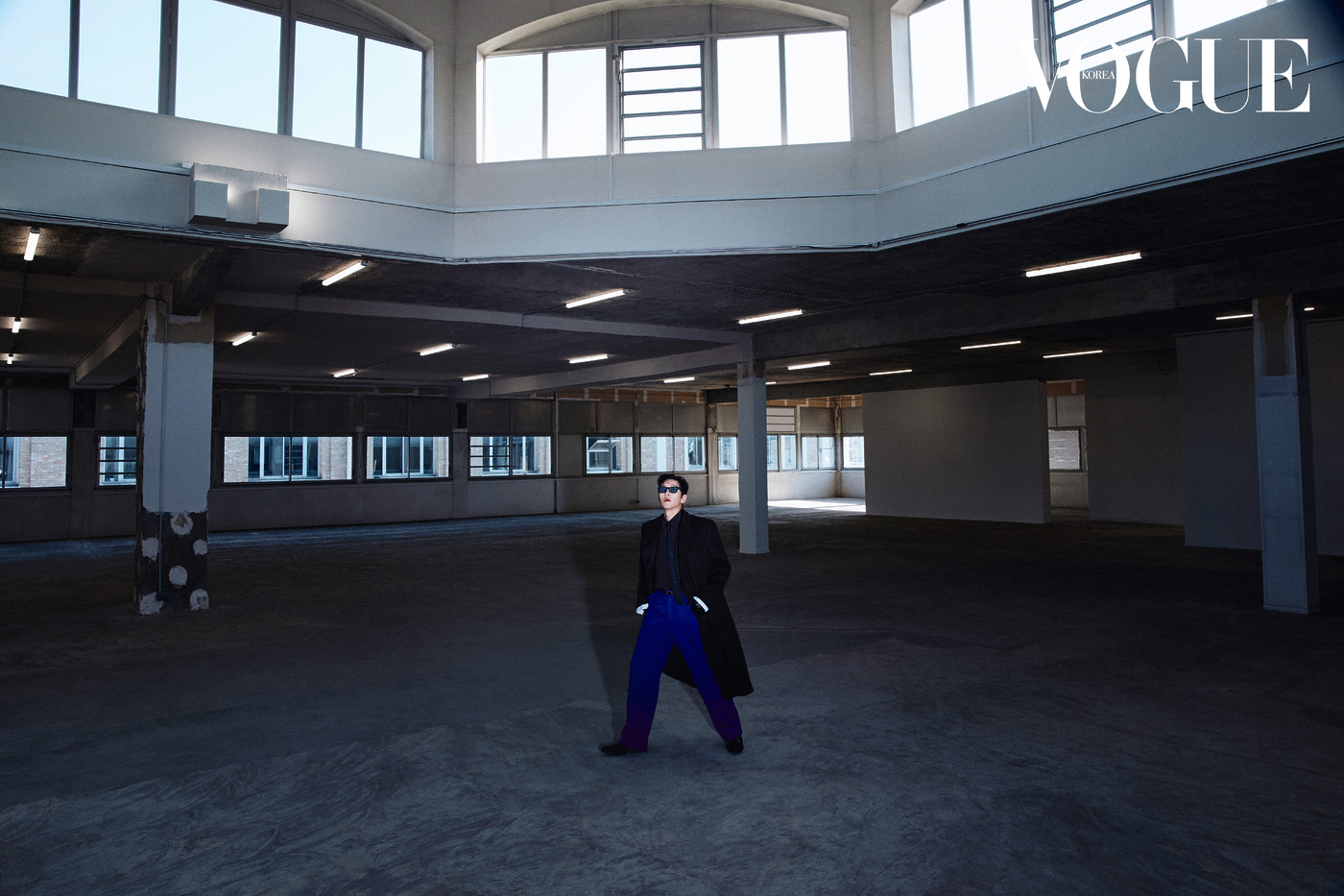 선글라스의 푸른 렌즈를 뚫고 나오는 지창욱의 강렬한 눈빛. 하이더 아커만의 데뷔 컬렉션과 함께 그가 디자인한 첫 번째 아이웨어 제품을 함께 매치했다.