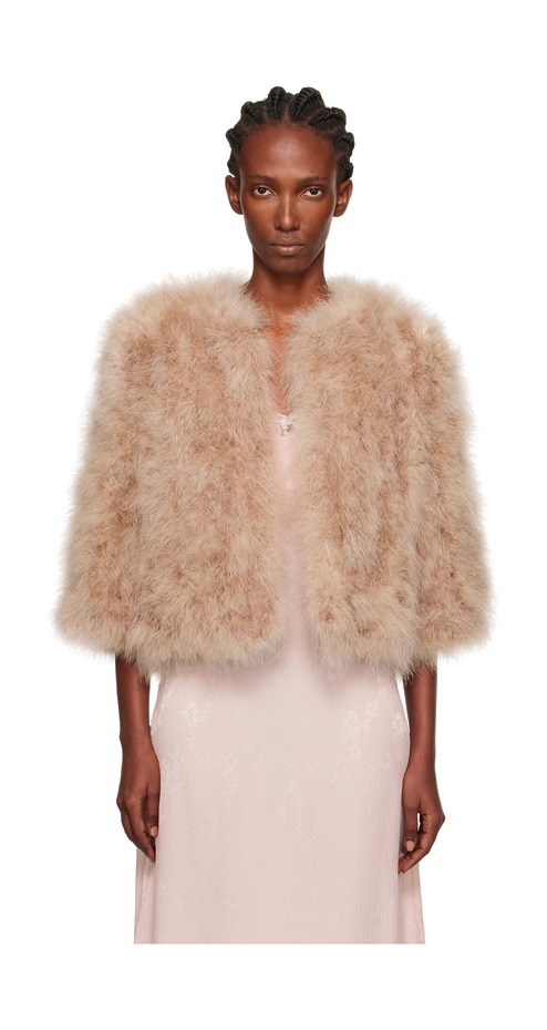 16알링턴브라운 & 핑크 제노아 깃털 코트