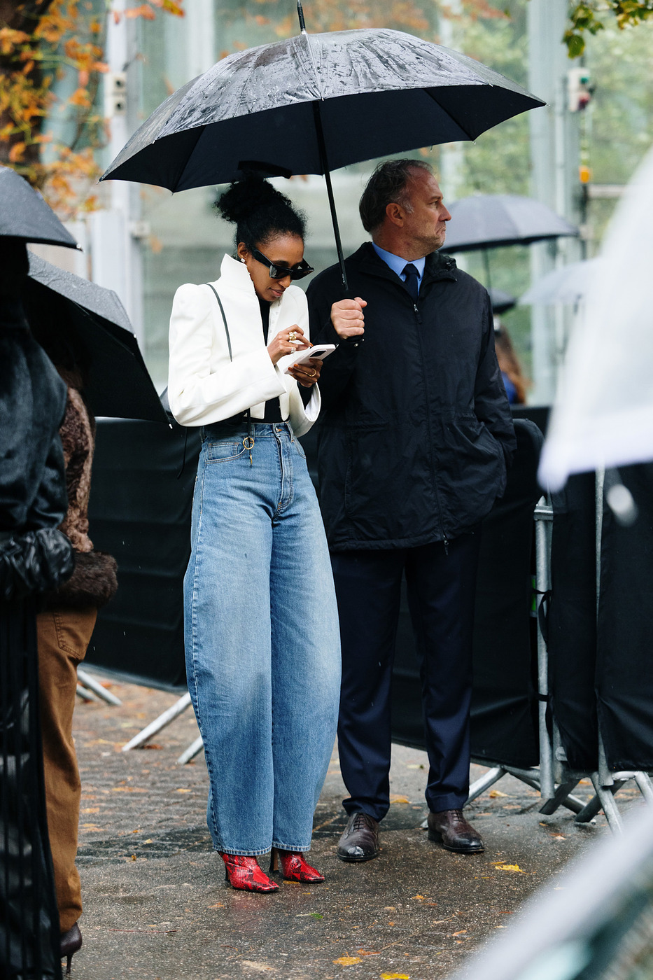 배럴 진 특유의 조각적인 실루엣 덕에 스타일링은 의외로 어렵지 않습니다. 과장된 라인이 이미 강렬한 포인트를 만들어주기 때문에 나머지는 미니멀하게 정리해야 한다는 것만 기억하면 되죠. 피터 뮐리에는 리조트 컬렉션을 통해 배럴 진에 더블 브레스트 블레이저와 부츠를 매치해 클래식한 무드를 완성했고, 스텔라 맥카트니는 화이트 셔츠와 함께 볼륨의 대비를 확실하게 보여주었어요.