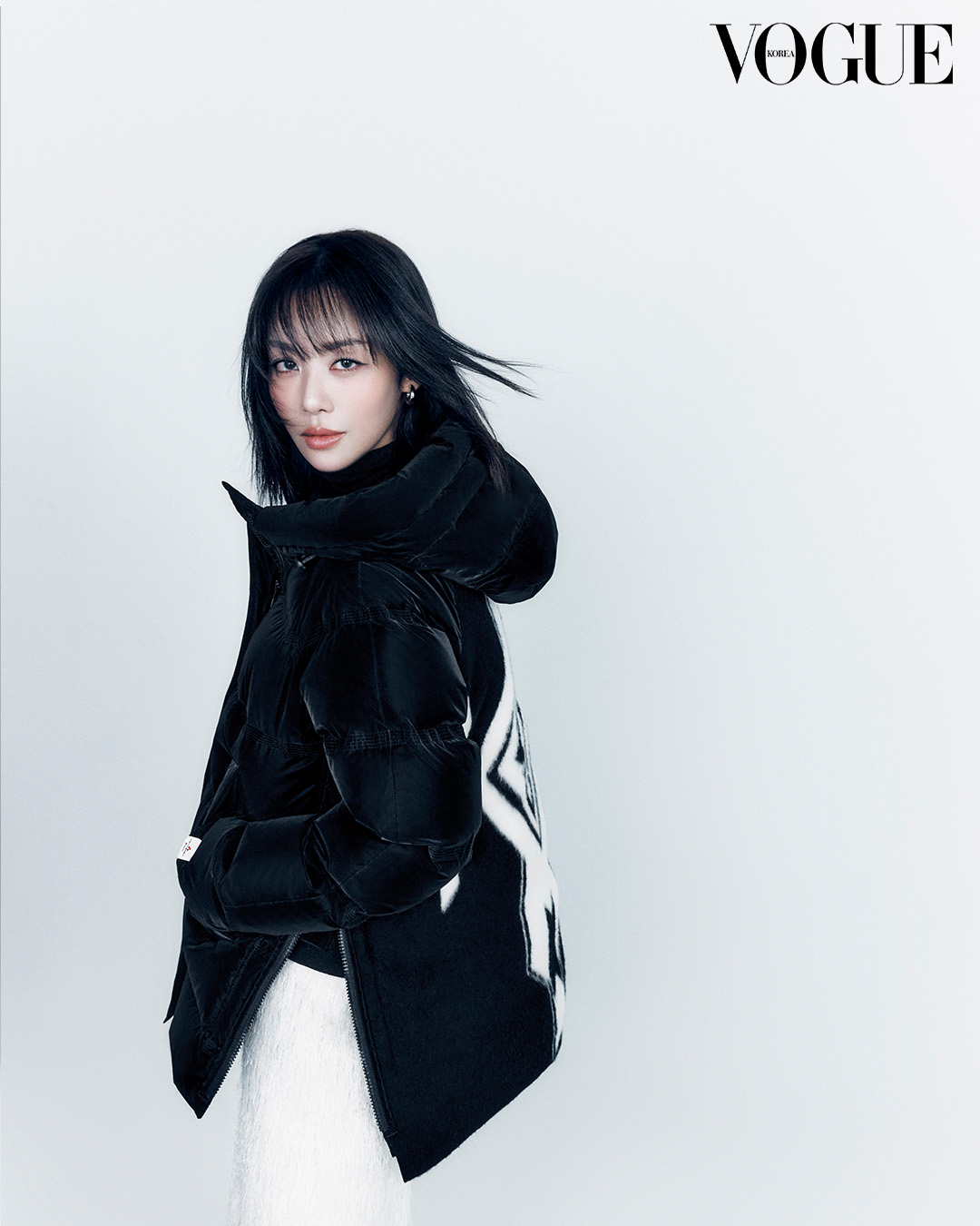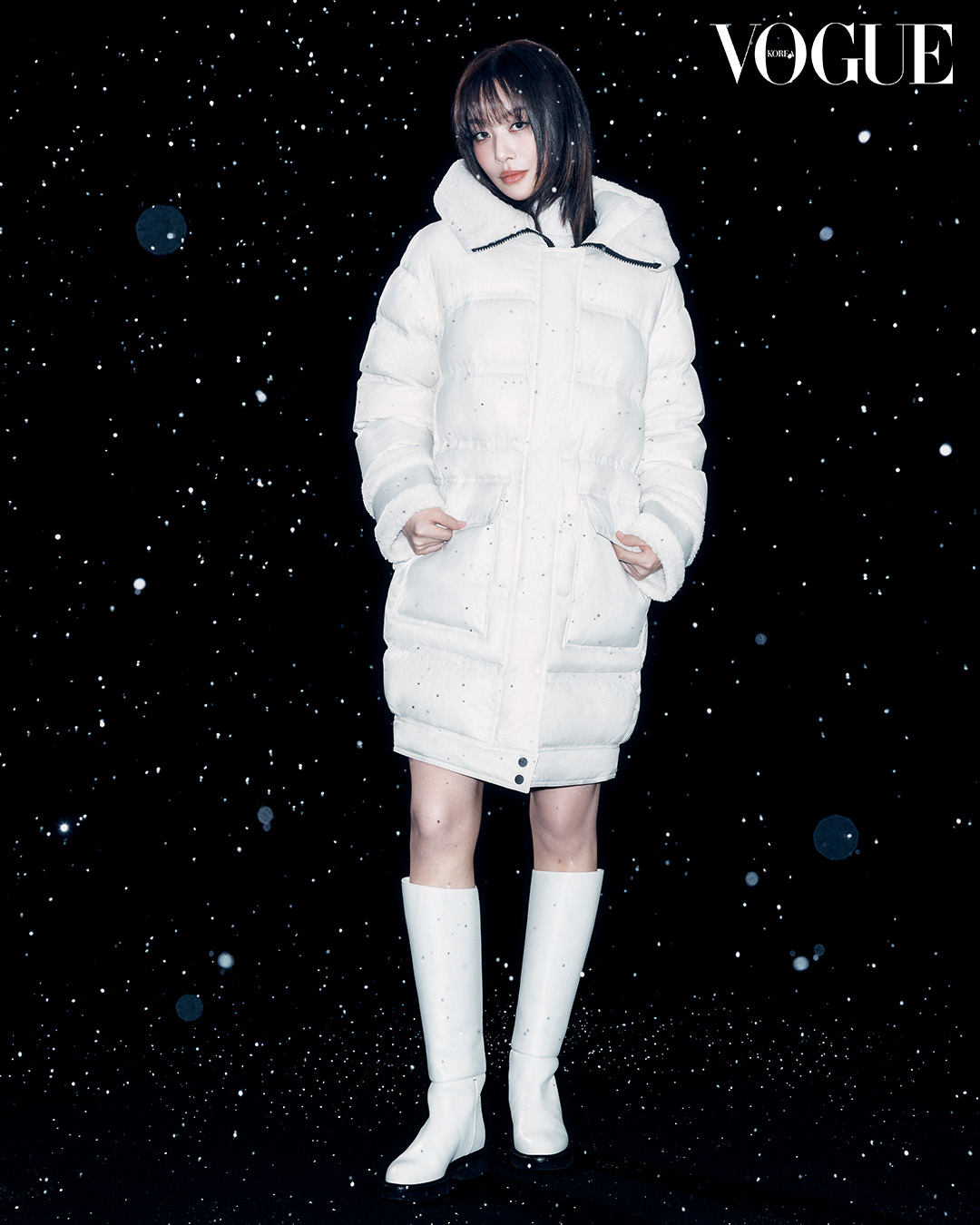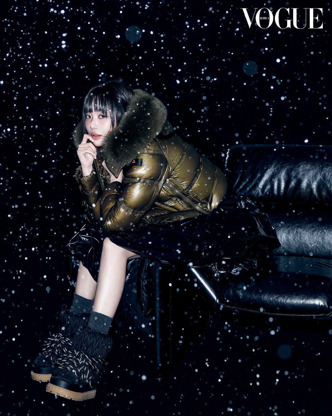 내추럴 퍼를 활용한 나샤 패딩과 은은한 멜란지 컬러가 세련된 무드를 자아내는 마그리테 니트는 페트레이(PEUTEREY).