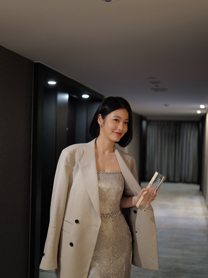 김고은은 아래로 쫙 뻗는 스트레이트 단발을 했어요. 앞가르마도 시원하게 6 대 4로 나눴고요. 컬 없는 직선, 목선을 드러내는 짧은 길이의 조합이 야무진 인상을 만듭니다.