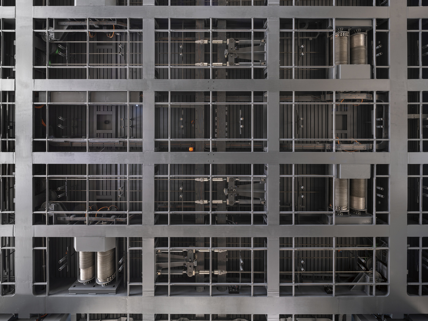 방문했을 땐 개관전이 시작돼 플랫폼이 실제 이동하는 장면은 보지 못했지만, 관람하면서 기묘함을 충분히 느꼈다. 내가 선 자리가 몇 층인지, 통로인지 전시 공간인지 구분이 무의미했고, 발코니에 서니 층을 가르며 설치된 작품이 한눈에 들어왔다. 일렬로 배열된 작품을 둘러보던 기존 갤러리의 수평적 관람이 아니었다. 걸음을 옮길 때마다 다른 각도에서 보이는 작품은 나와 또 다른 관계를 형성했다. 포르마판타스마는 이렇게 설명했다. “작품과 건물을 동시에 보여줘야 한다는 고민 때문에 ‘떠다니는 갤러리’라는 아이디어를 도출했어요. 여러 층을 수직적으로 가로지르는 갤러리를 논의한 거죠. 이곳에선 관람객이 자기만의 길을 걸으며 새로운 시각으로 작품을 고찰할 수 있습니다.”