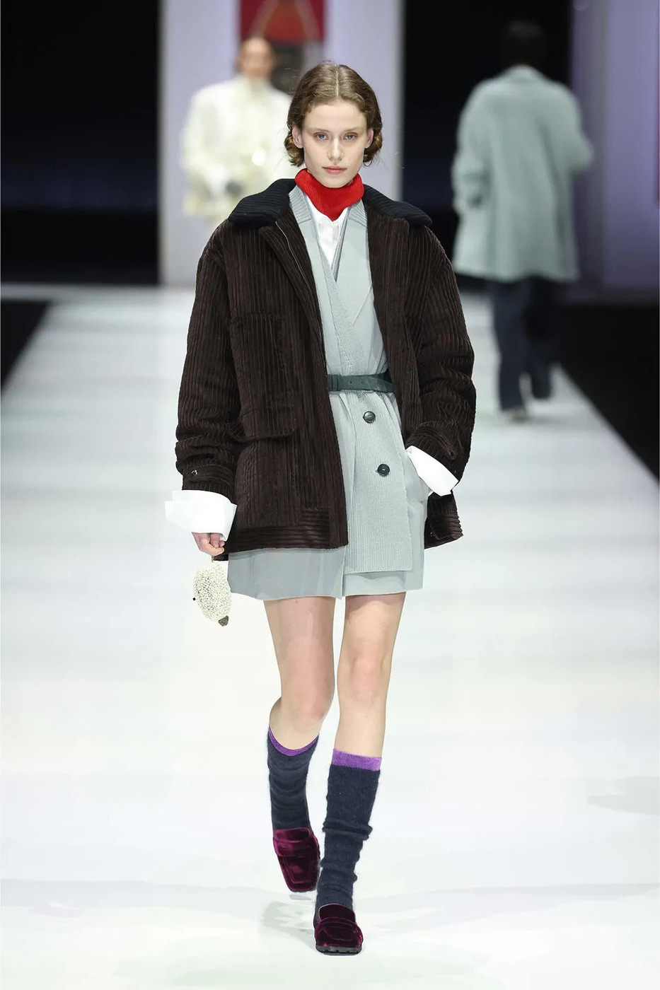 일상에서 활용도가 좋을 아르마니 부츠도 눈여겨보세요. 익숙한 검정 앵클 부츠를 소재만 벨벳으로 바꾸는 거죠. 벨벳은 원단 자체에 깊이감이 있기 때문에 겨울 룩의 밀도를 높여주거든요. 레더가 지겹거나, 무언가 포인트가 필요한 날에 제격이죠!